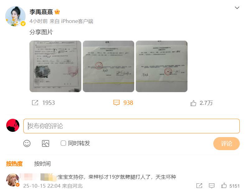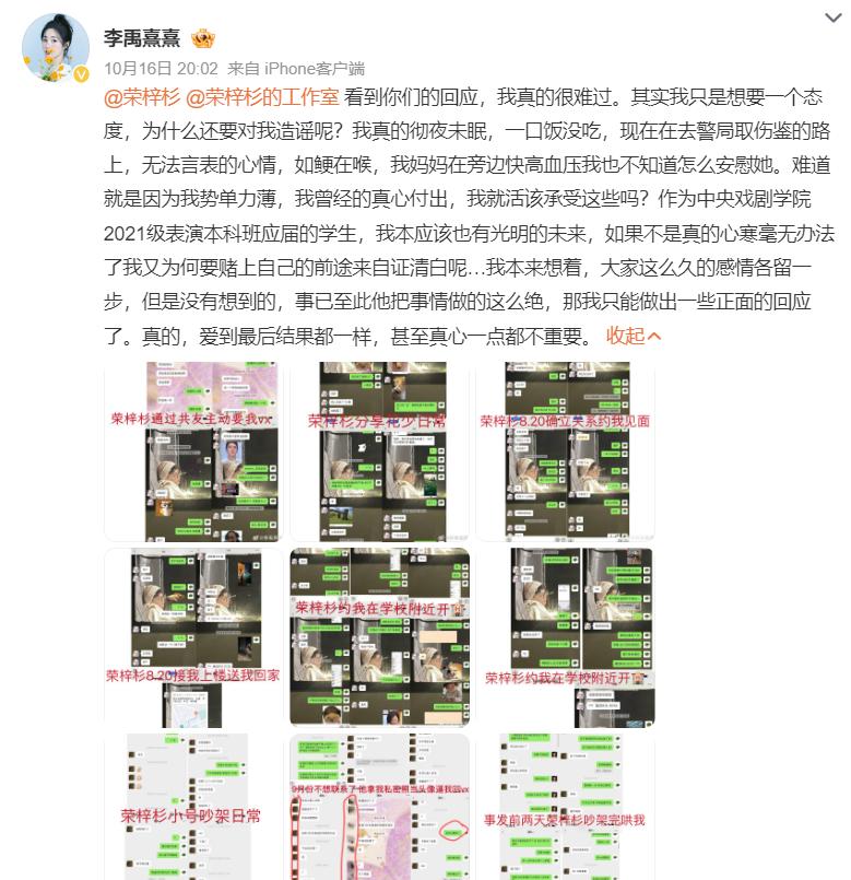 但偏偏荣梓杉让李禹熹心寒了,她在10月15日晚发文曝光了他们的恋情,并控诉荣梓杉。