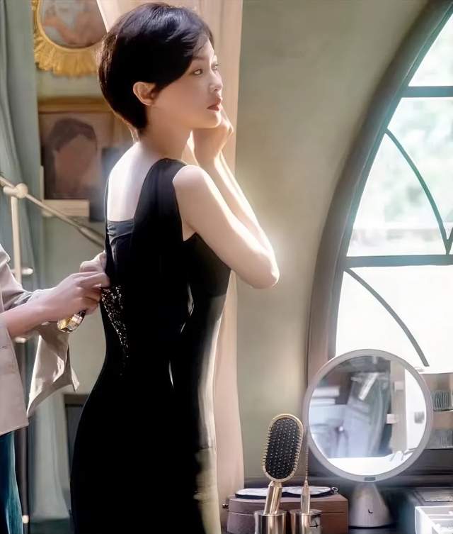 唐嫣出演女主角林展翘,一头干净利落的短发,打扮十分女强人,穿黑色长裙,有了年龄感。