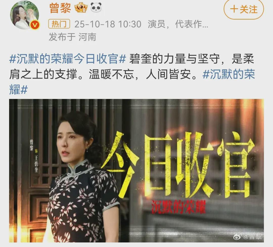 饰演吴石夫人王碧奎的演员曾黎,也发文告别角色。