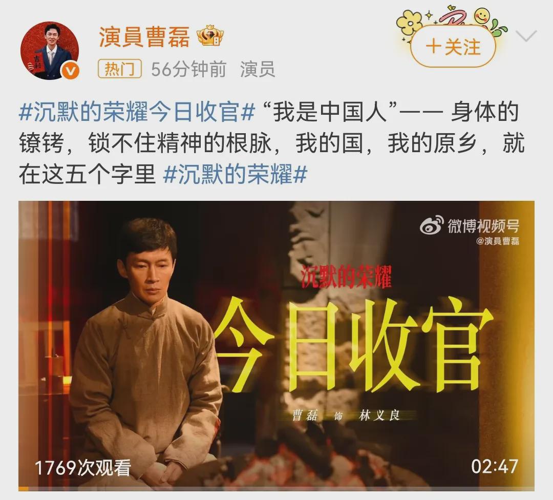 曾经在《觉醒年代》中饰演鲁迅的实力派演员曹磊,也发文告别角色,他在《沉默的荣耀》中饰演地下交通站站长林义良,被抓后受尽酷刑,依然坚贞不屈,最后被吴石设计成功救出。