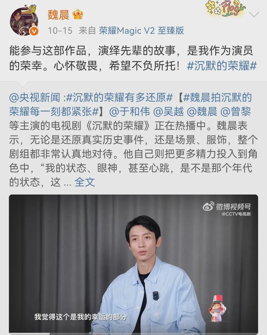 饰演聂曦的演员魏晨,发文说自己能参与这部作品,演绎先辈的故事,是自己作为演员的荣幸。