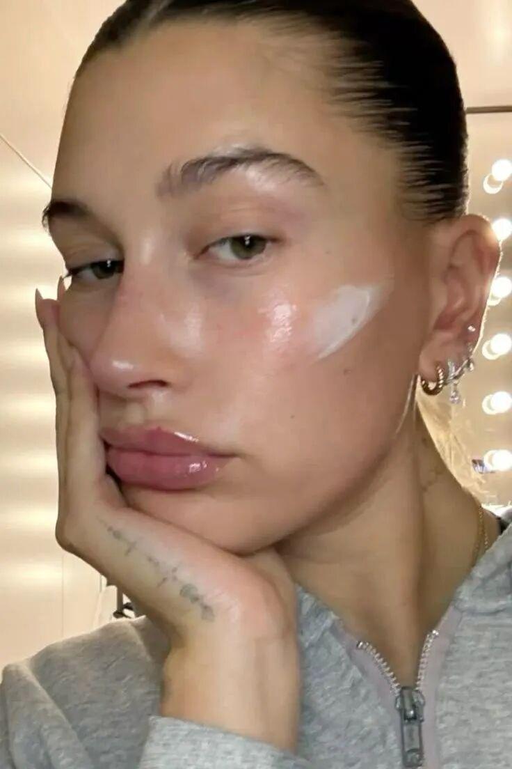 Hailey 的“奶油拿铁唇”妆容已经成了这两年的风向标。她不再追求夸张的唇色,而是通过细节塑造气场。略深一度的棕调唇线轻轻描在唇缘,让唇形看起来更立体。唇中央叠加浅粉或米杏色唇蜜,带出自然光泽,让双唇在柔光中显得更饱满。
