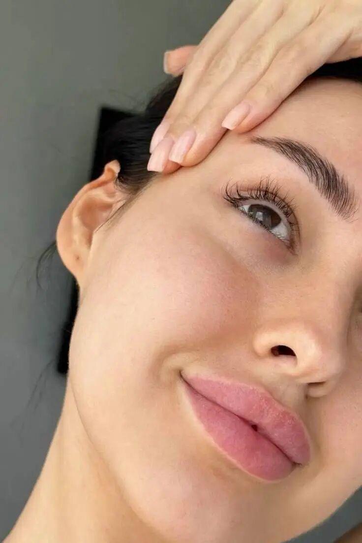 这种模糊唇线的妆感,是近年来在欧美流行的 soft glam 代表。唇线轻轻晕开,没有锐利的边界,却能让整个面部更柔和、比例更协调。