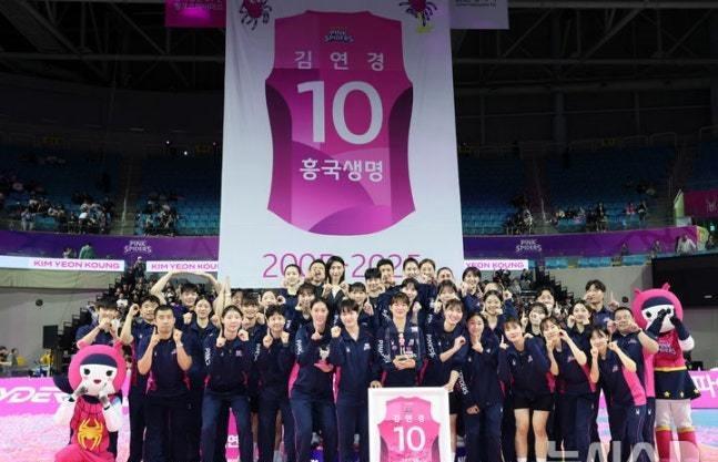 10月18日下午仁川,韩国Heungkuk Life Insurance女排俱乐部在新赛季揭幕战上,为37岁的金软景举行了退役仪式,其10号球衣同时退役。