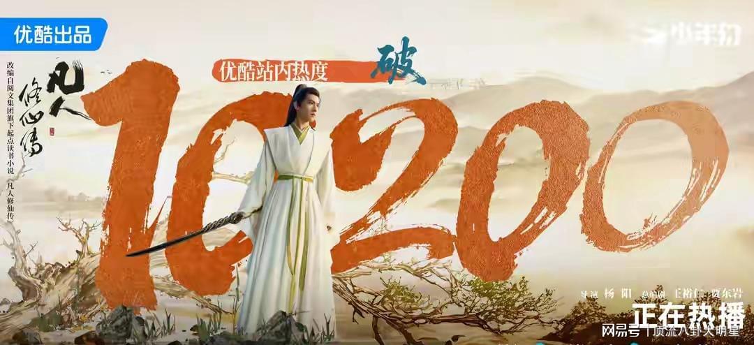 在优酷视频站内热度峰值破10010,微博话题阅读量破43.6亿,抖音话题播放量破10亿。灯塔播放量:13.86亿,集均播放量4383万,韩立这个角色在V榜指数9.08。