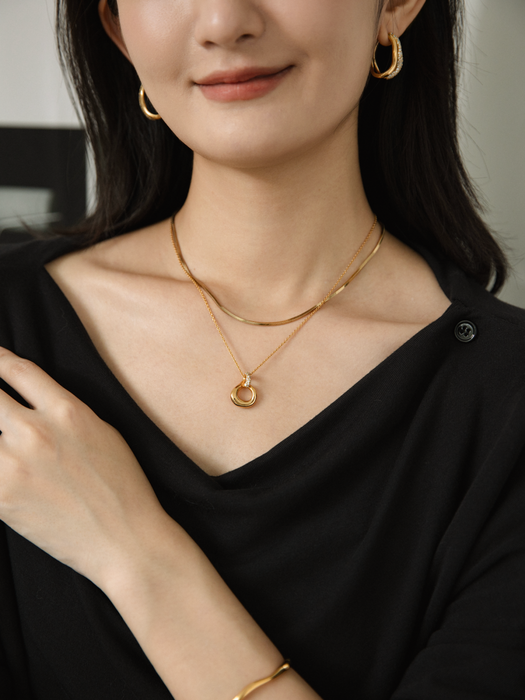 如果主项链本身就是存在感比较强的设计款,只需要搭配一条简约的底链,或者直接省略底链