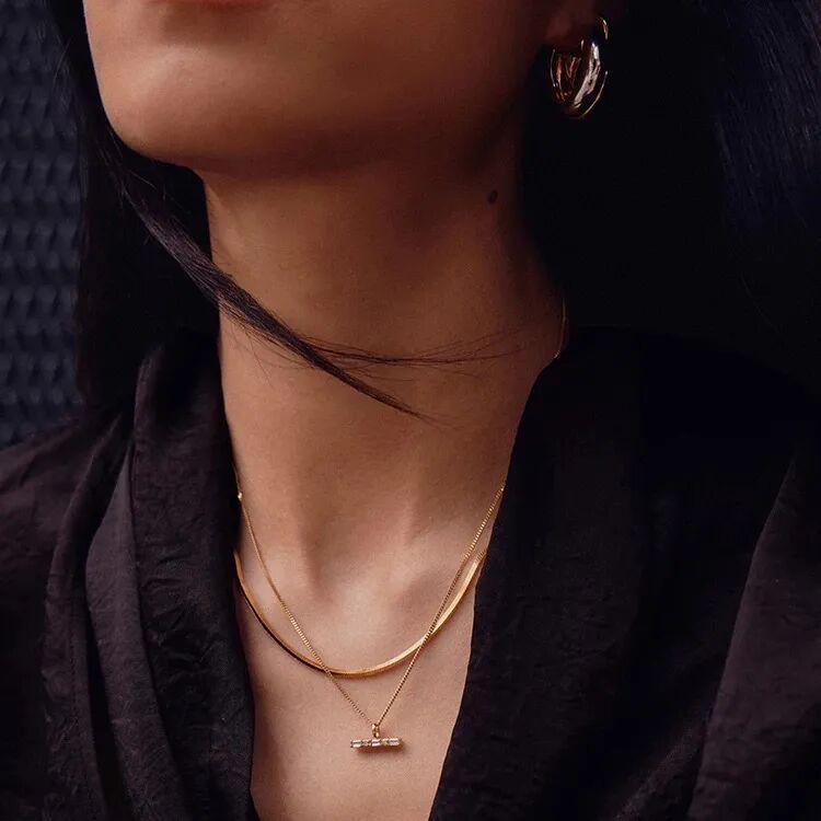 1️⃣底链,选择基础纯色、没有任何吊坠装饰的素链,比如蛇骨链、O字链、肖邦链等;