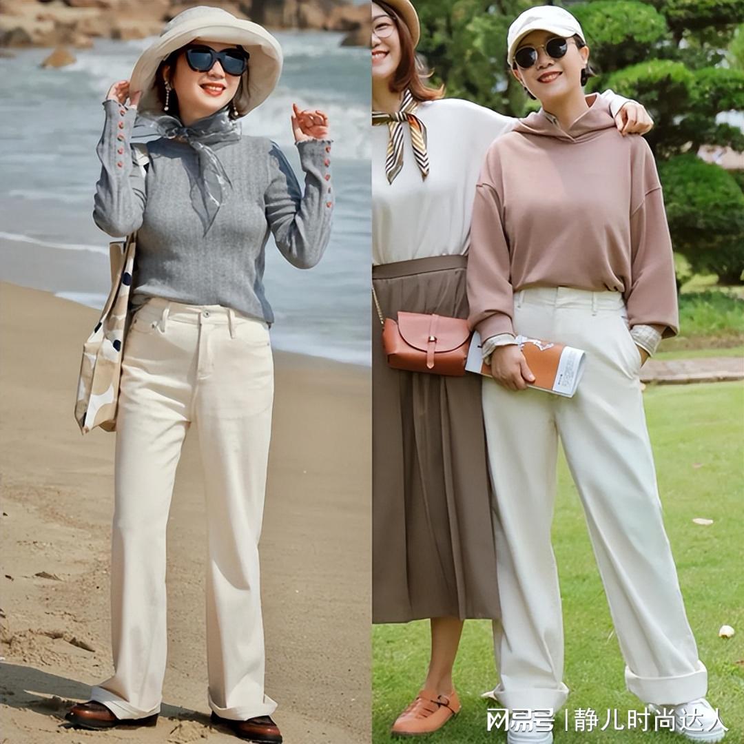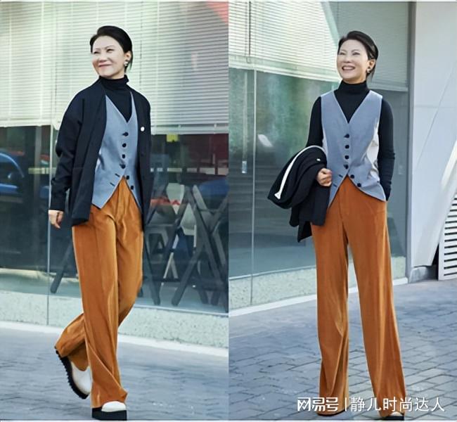更推荐中年女性穿阔腿裤,不管是腰腹有点小肉肉,还是腿型不够直,一条阔腿裤就能全遮住。选款式的时候,推荐高腰的版型,面料选垂坠感好的西装料或者天丝料,别选软塌塌的,穿起来才会走路带风还显腿长。