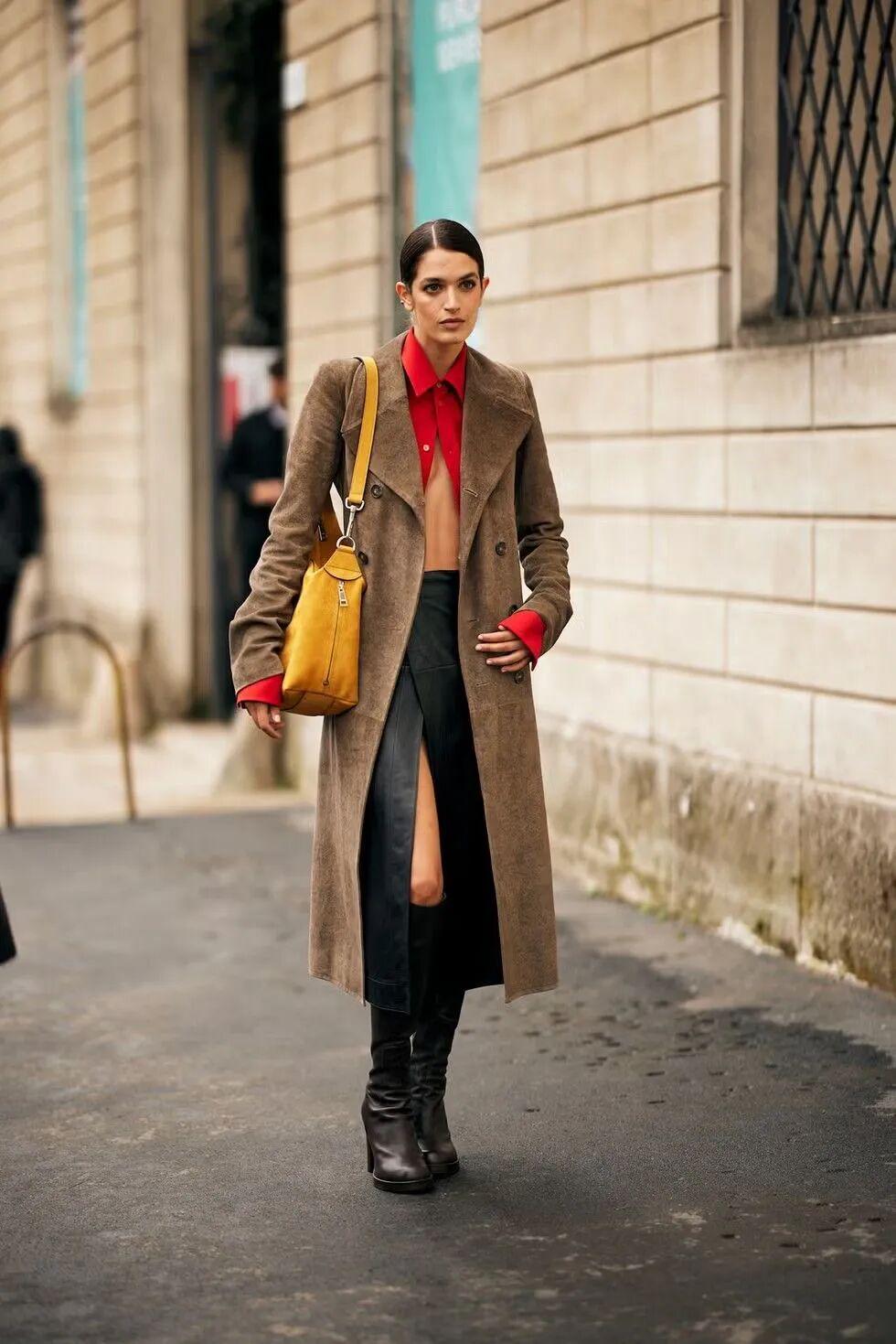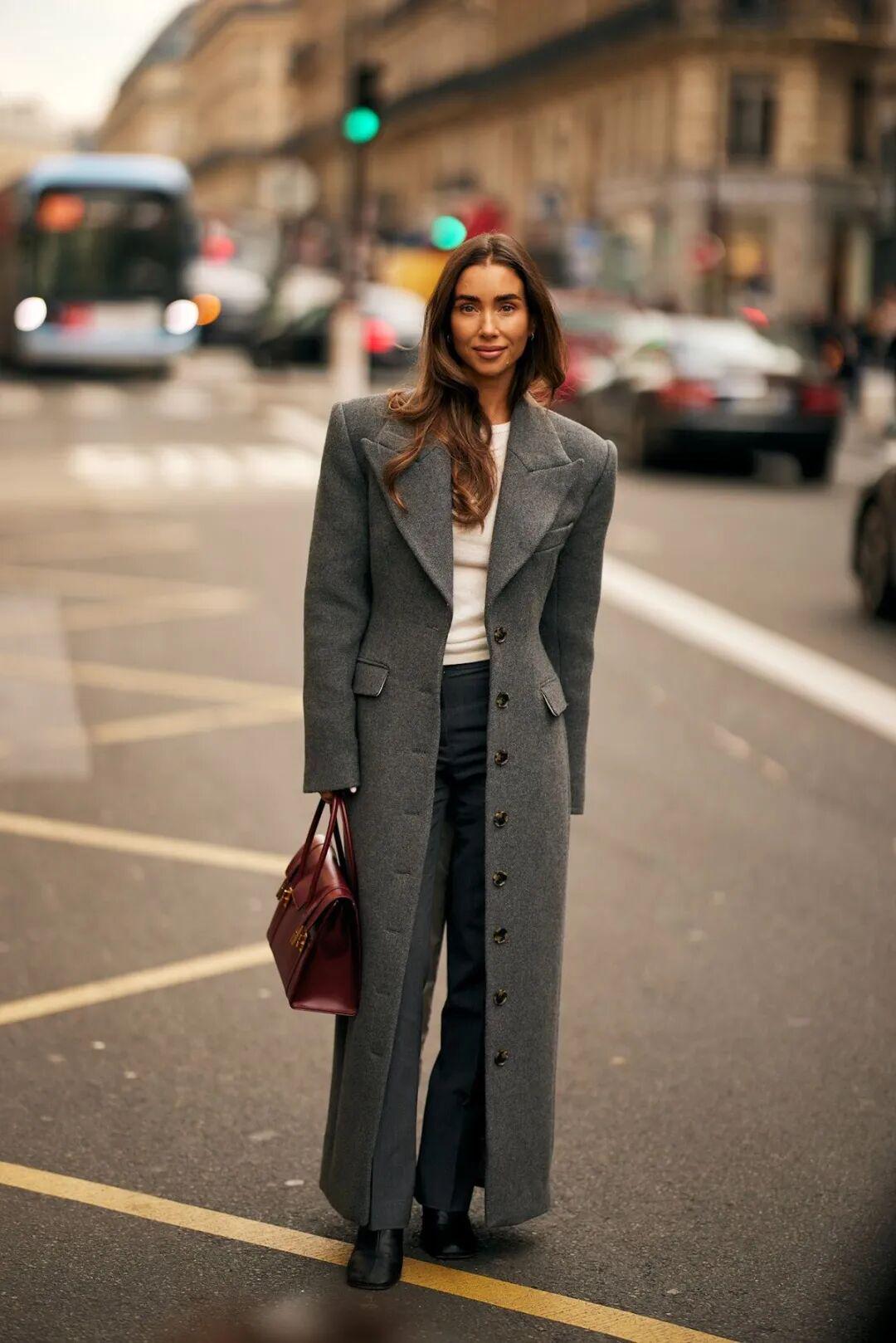 驼色、深灰、藏蓝依然是主角。但冷调如烟灰蓝、浅米杏也开始流行,丰富了冬天的情绪。