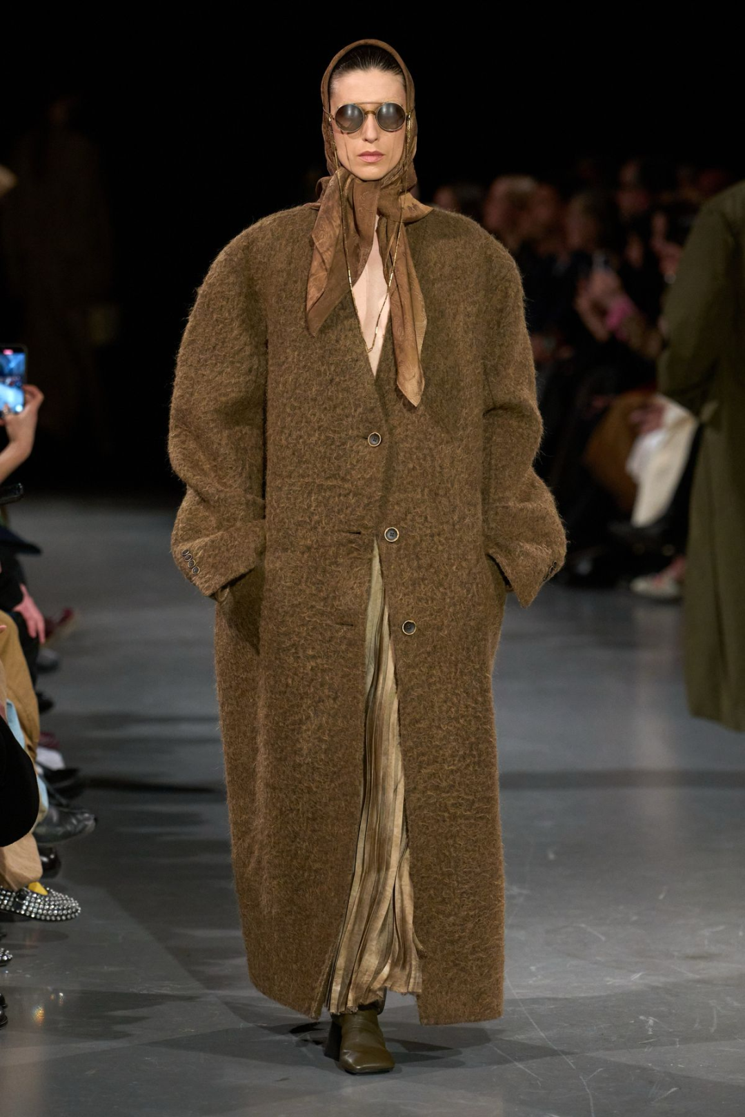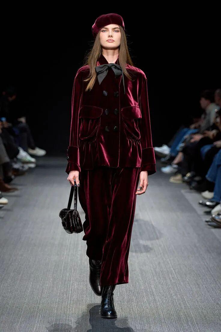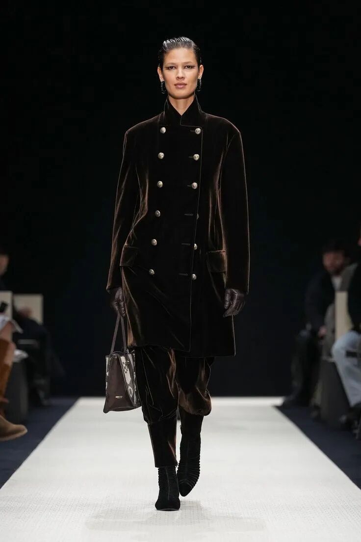 今年的天鹅绒大衣不再厚重,剪裁更轻,线条更顺滑。