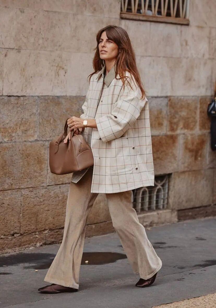 想要更有故事感,可以选棕调大格纹,复古又温柔。