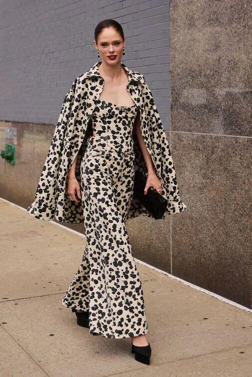 一身中性色打底,动物纹做外层,整个造型就有了微妙的冲突感。