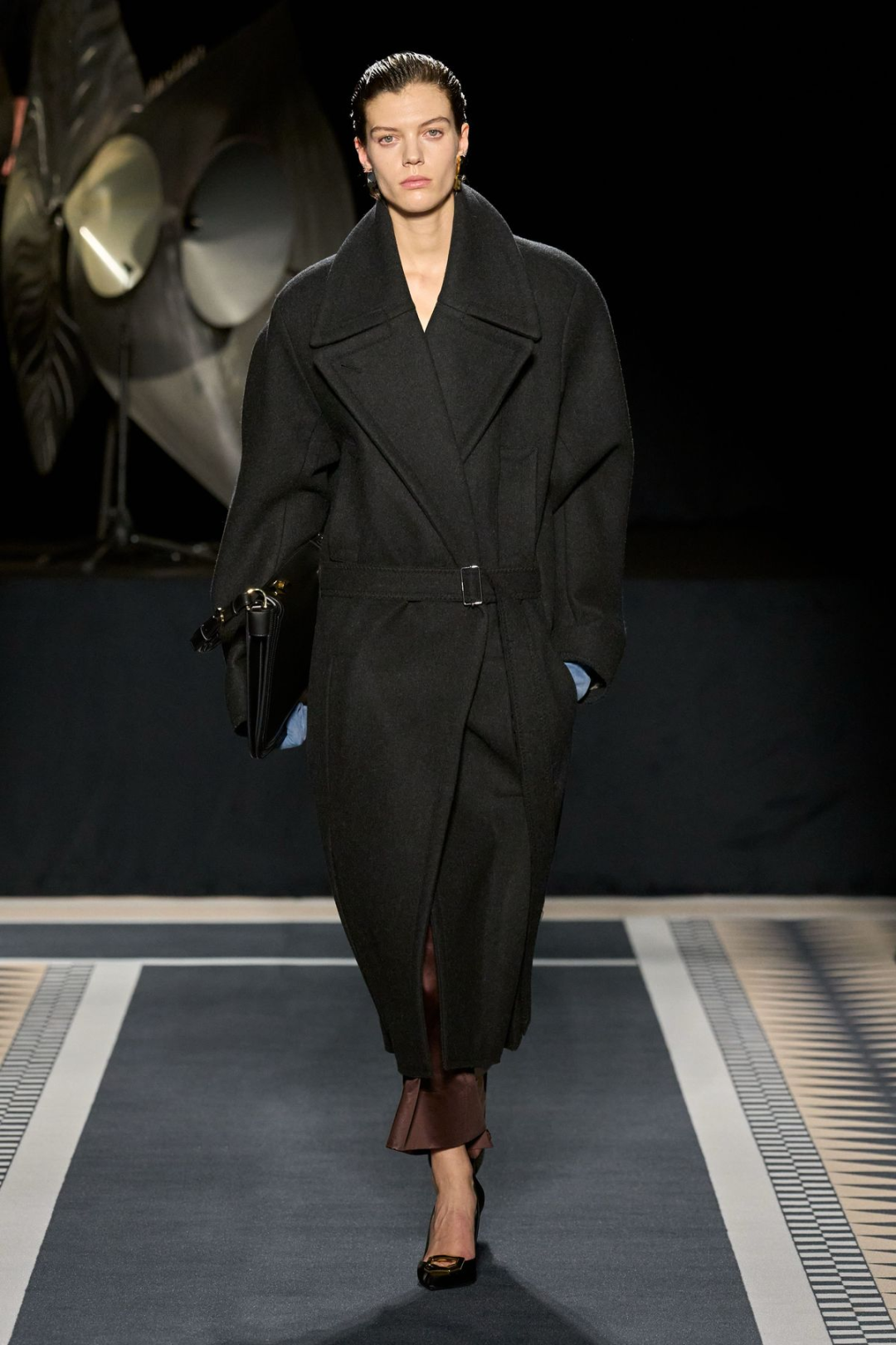 搭配方面不需要多余装饰,只要系上腰带、拎一个结构感手袋,就已经完成造型。