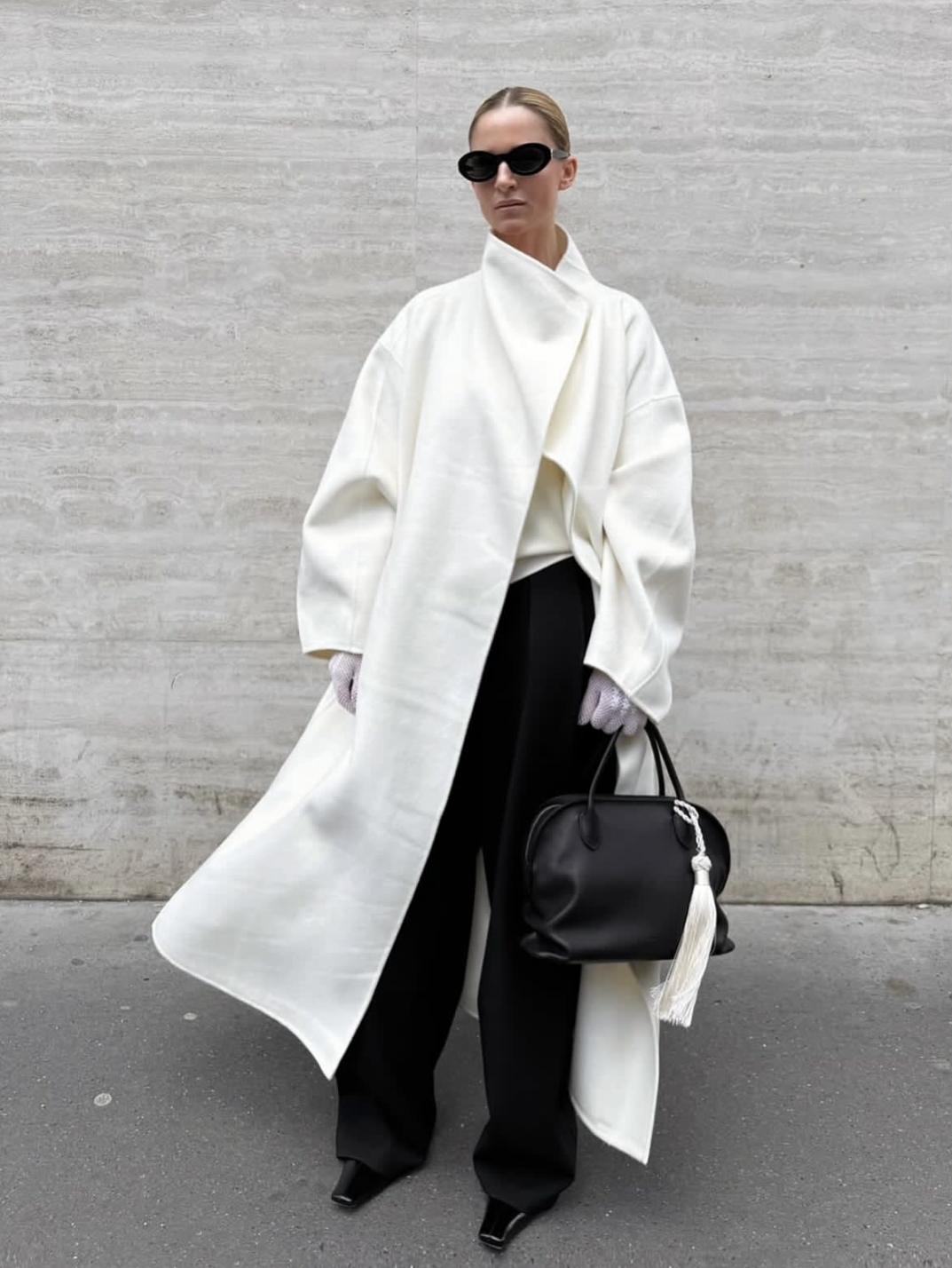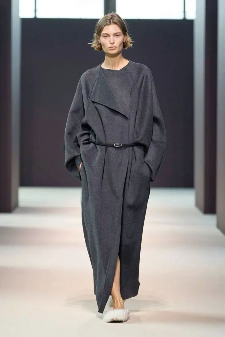 流线型大衣讲究的是干净的轮廓——肩部自然、腰线轻收、下摆顺垂。