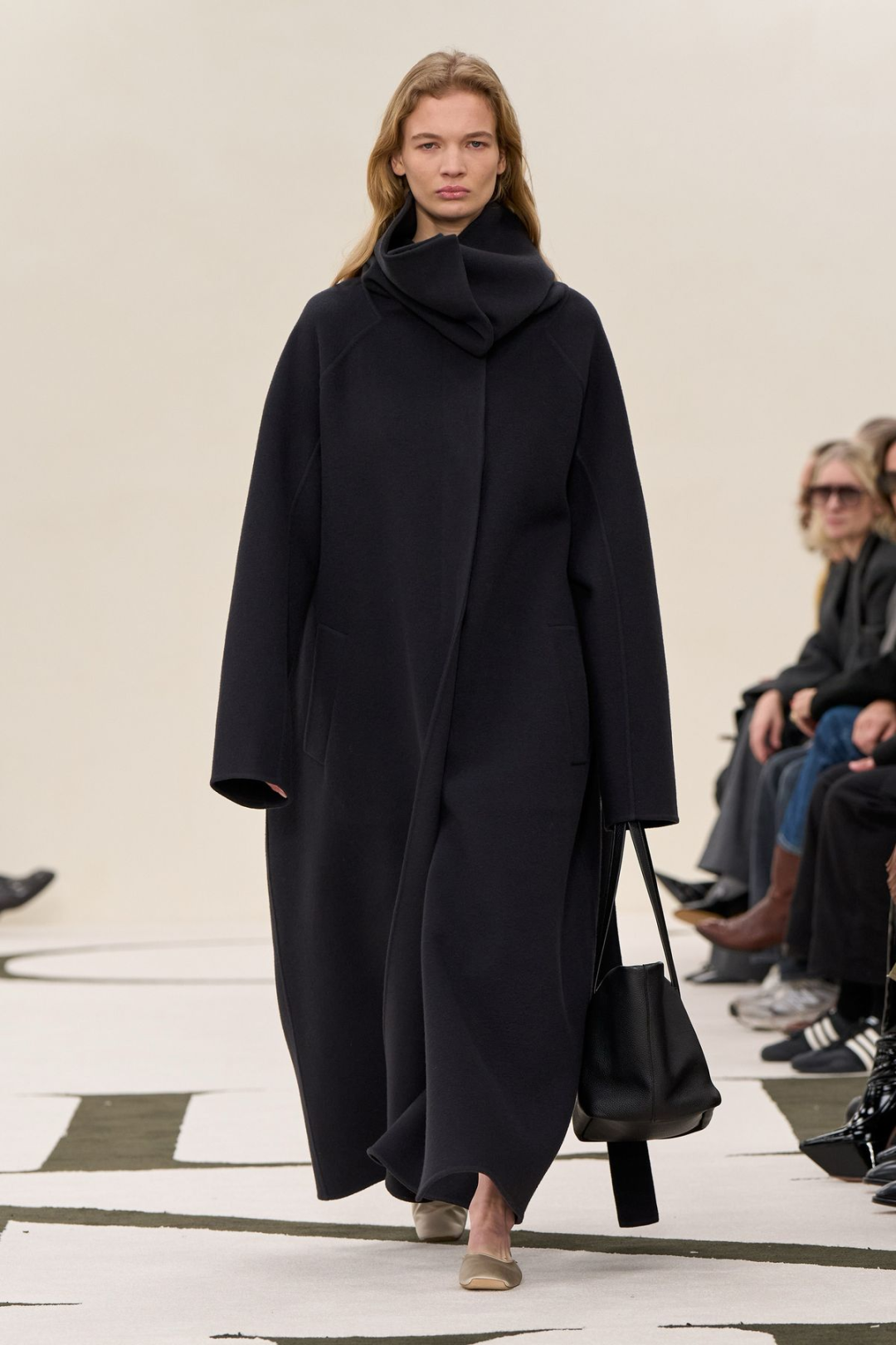 日常搭配上,还是更建议让内搭和大衣同色,鞋子也选择顺色,让线条延展下去,也穿出“松弛的随性美”。