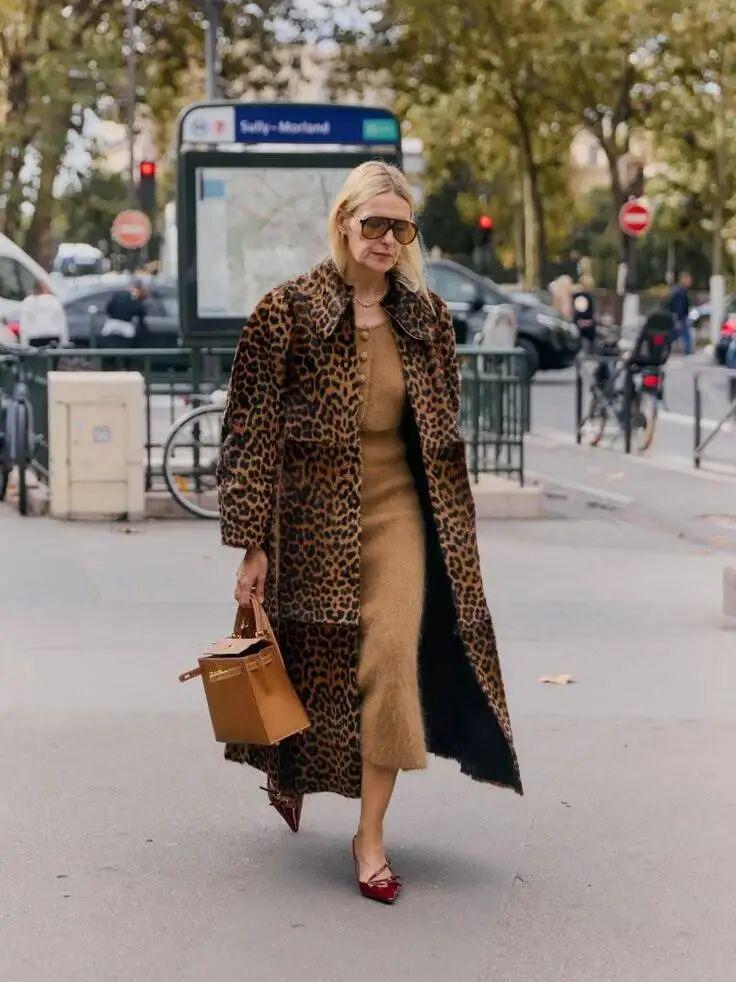 豹纹不再是派对符号,蛇纹也不再冷艳,它们被柔化成低饱和的奶驼、灰棕、雾金。这种“野性”反而更有味道。