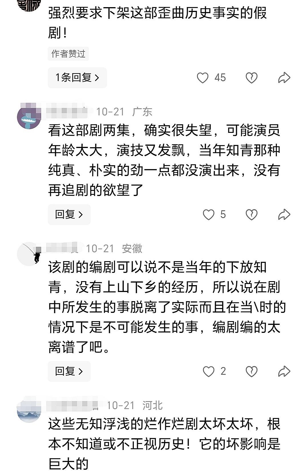 大量的吐槽,当年的知青们尤其不满,甚至要求电视剧下架。