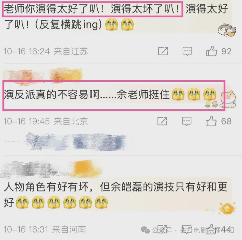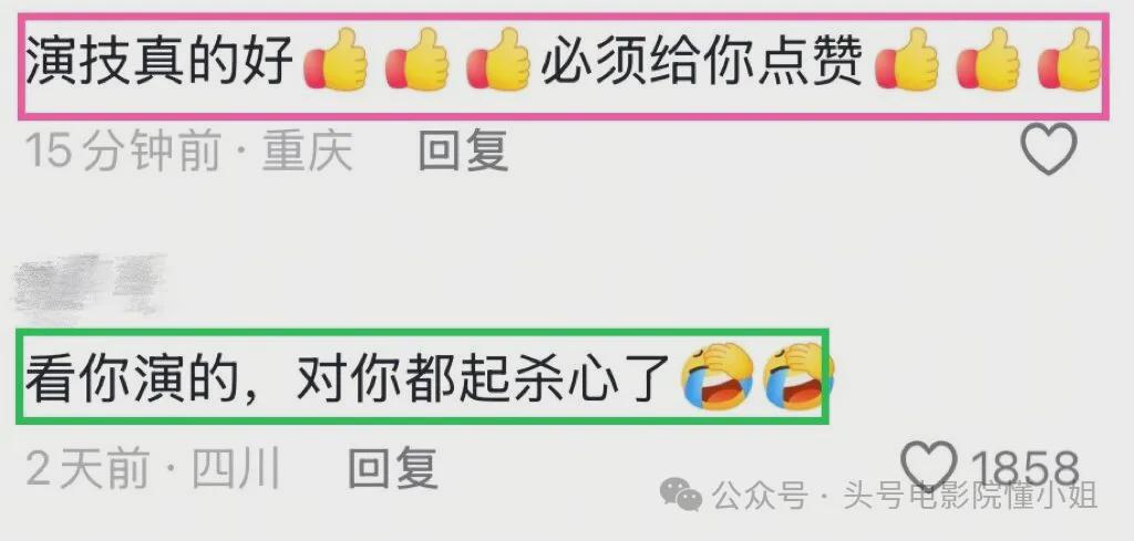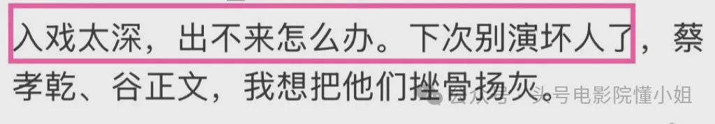 但同时,不同的观众也有了两种不同的反应:一方面有人夸赞演员,但另一方面有的则模糊了角色和演员本身,看得太入戏,把戏里的角色上升到了演员本身。