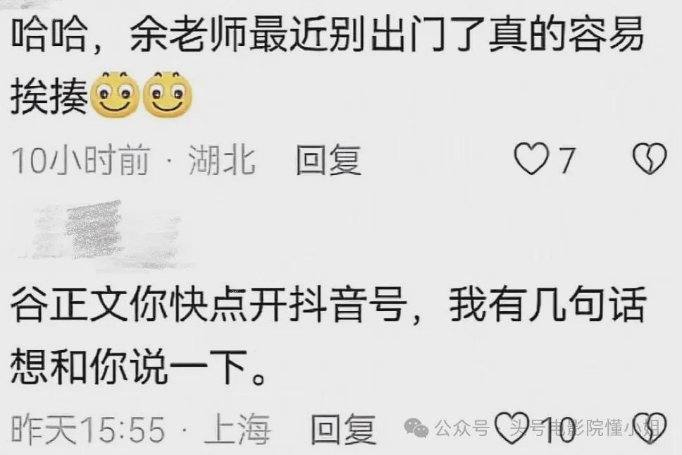 很多网友让他去抖音上开账号,其实是想找他宣泄看剧的情绪,宣泄对谷正文的恨之入骨。