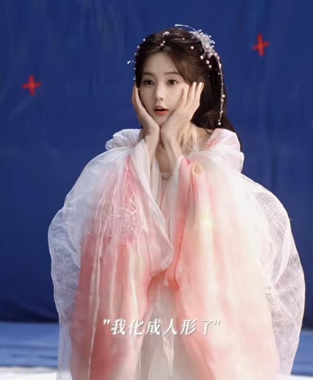 粉色纱衣非常符合蛛网的形象,又显得她整个人像个水蜜桃一样软软糯糯的。