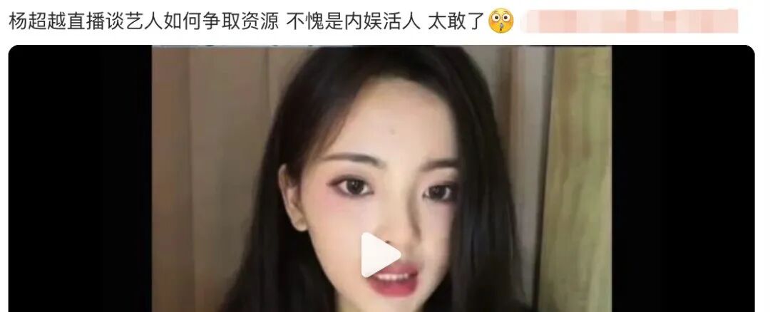 最近有一段杨超越直播的视频又上了热搜,这段视频里她聊到艺人争取资源的话题,大致意思是艺人缺乏资源置换资本,需在有限剧本中选择最适配自身特质(如观众缘、人设契合度)的角色,而非盲目追求大制作。这中间还有“粉丝死劲艾特制片方投简历”的调侃,但被部分网友理解为是煽动粉丝抢资源的意图。