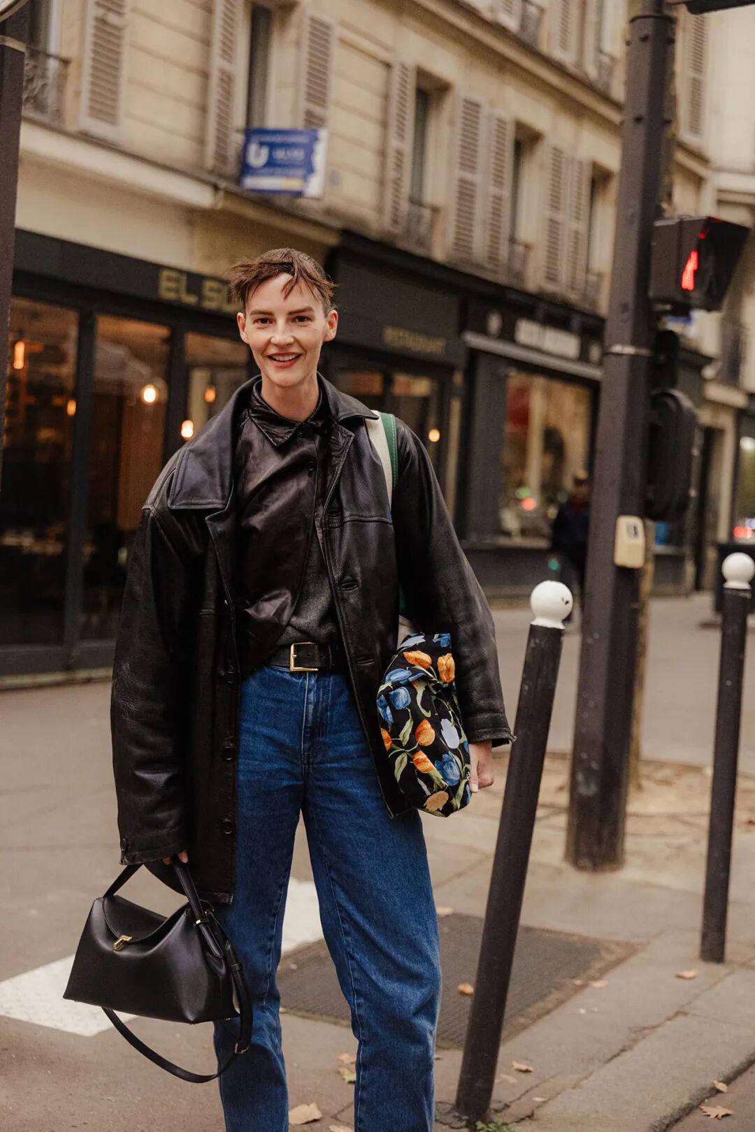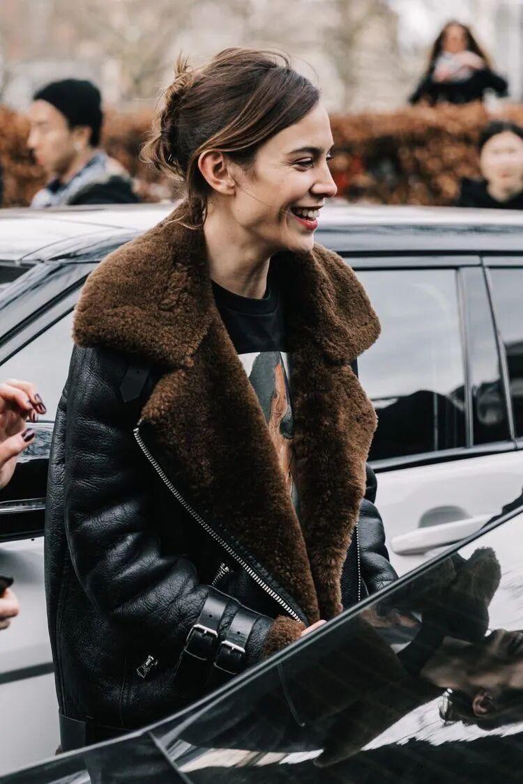 除了皮毛一体夹克外,Acne Studios的皮衣也很受欢迎,在街拍中常常会出现,皮衣控可以留意下。▼