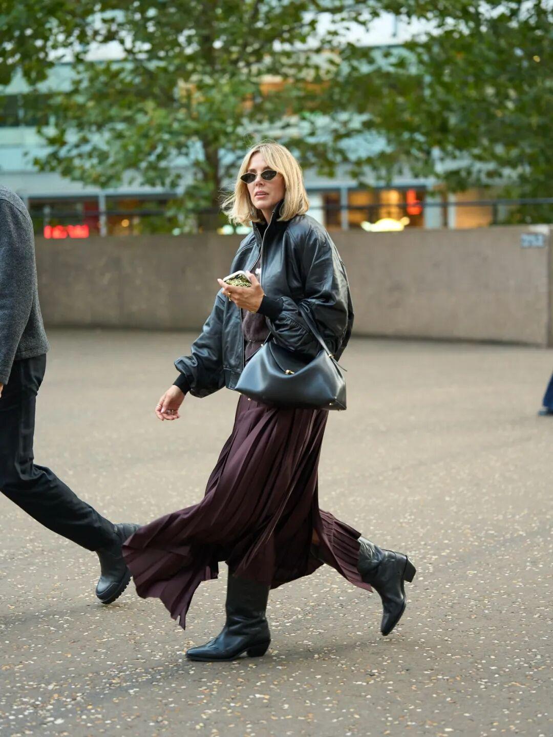 皮衣和切尔西靴的组合也是经典搭配了,摇滚味十足。▼