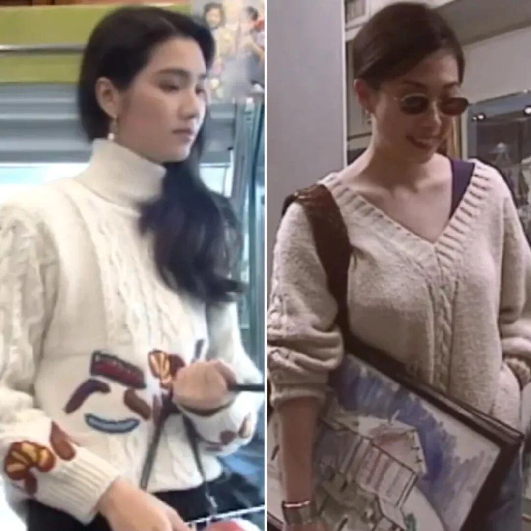 90年代的香港电视剧中就出现过绞花毛衣的穿搭。▼