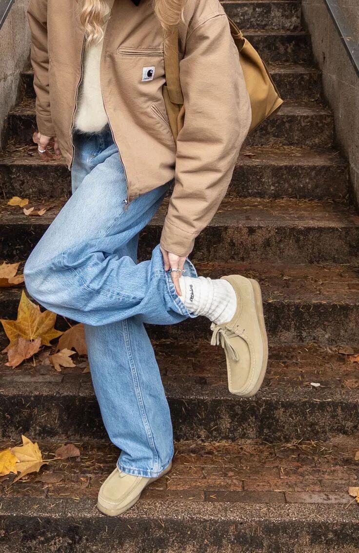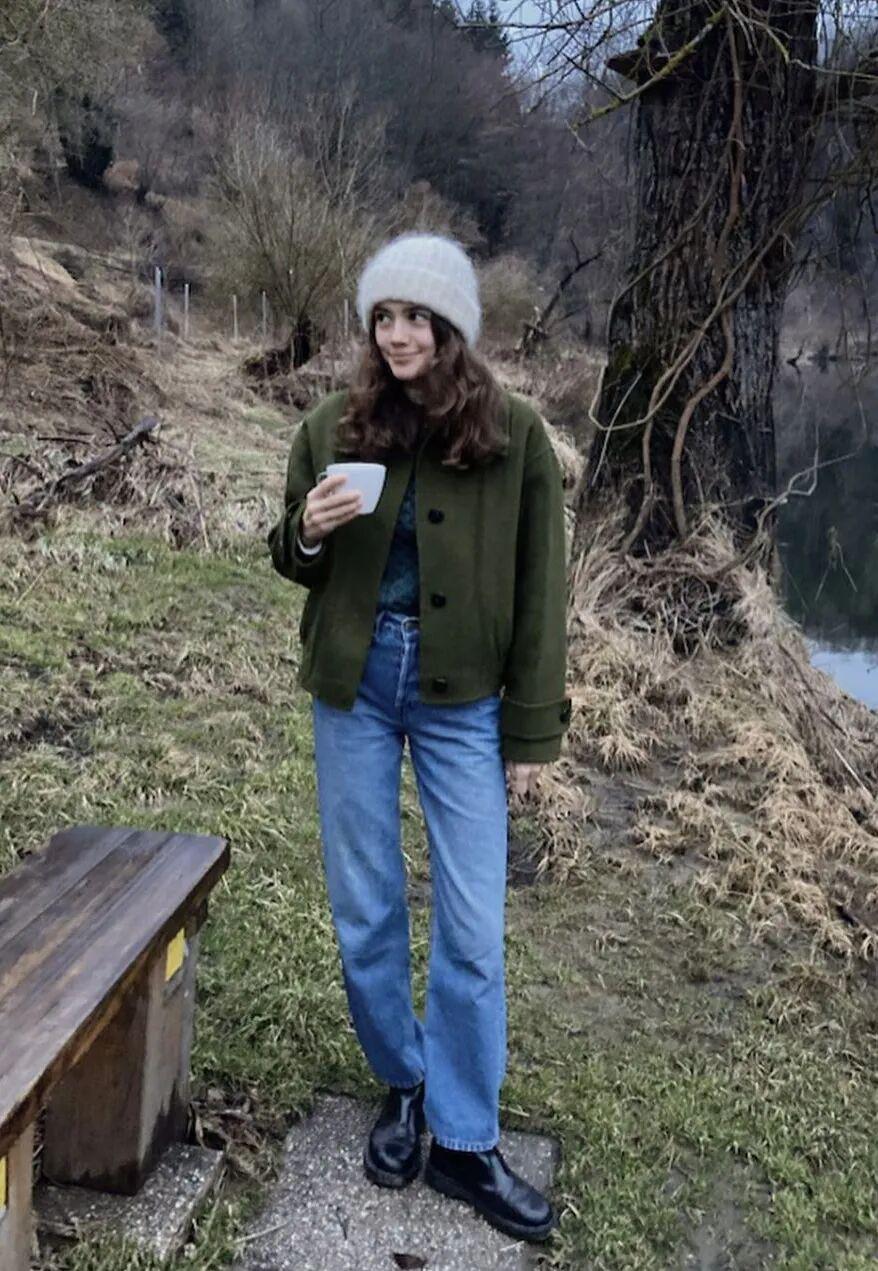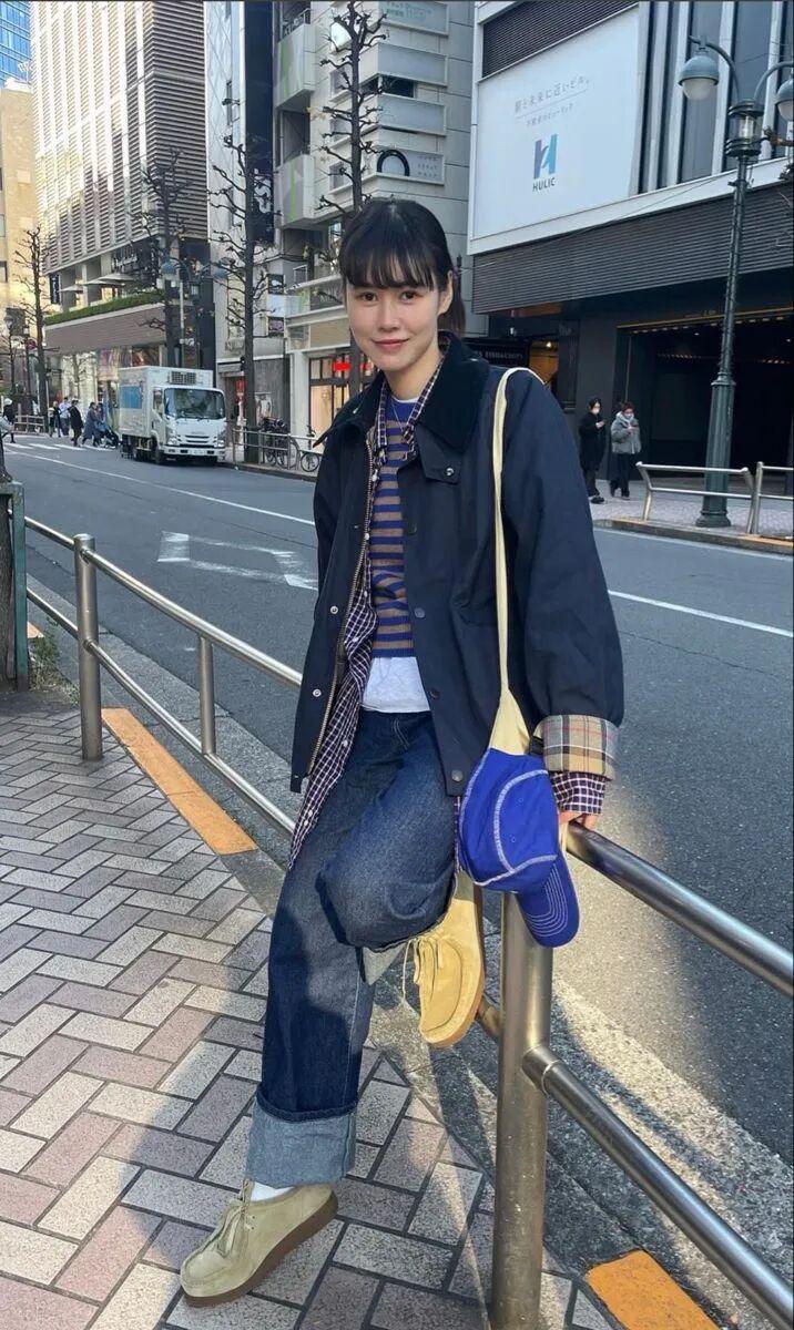 工装外套+牛仔裤+袋鼠鞋的穿搭公式可以照抄,今年特别流行。▼