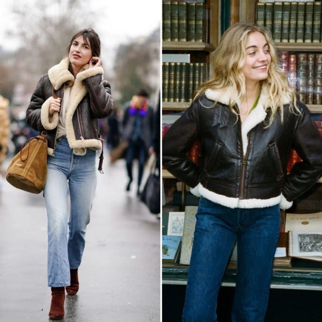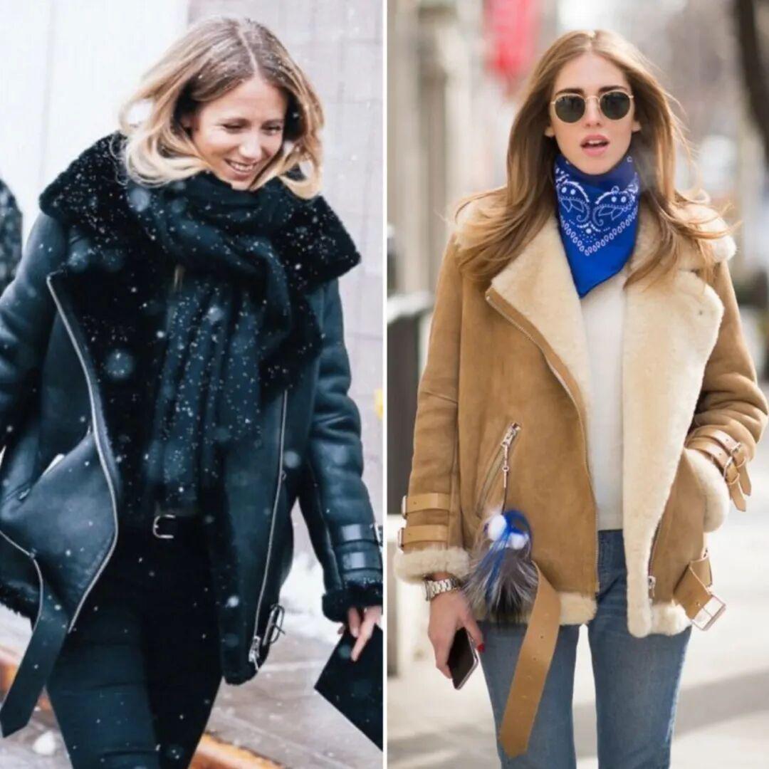 除了皮衣款,这种麂皮反绒的款式也很推荐,颜色大多是驼色、焦糖色,没有一般皮毛一体夹克的硬朗感,更温暖柔和、对亚洲人也很友好,缺点就是打理起来比较麻烦。▼
