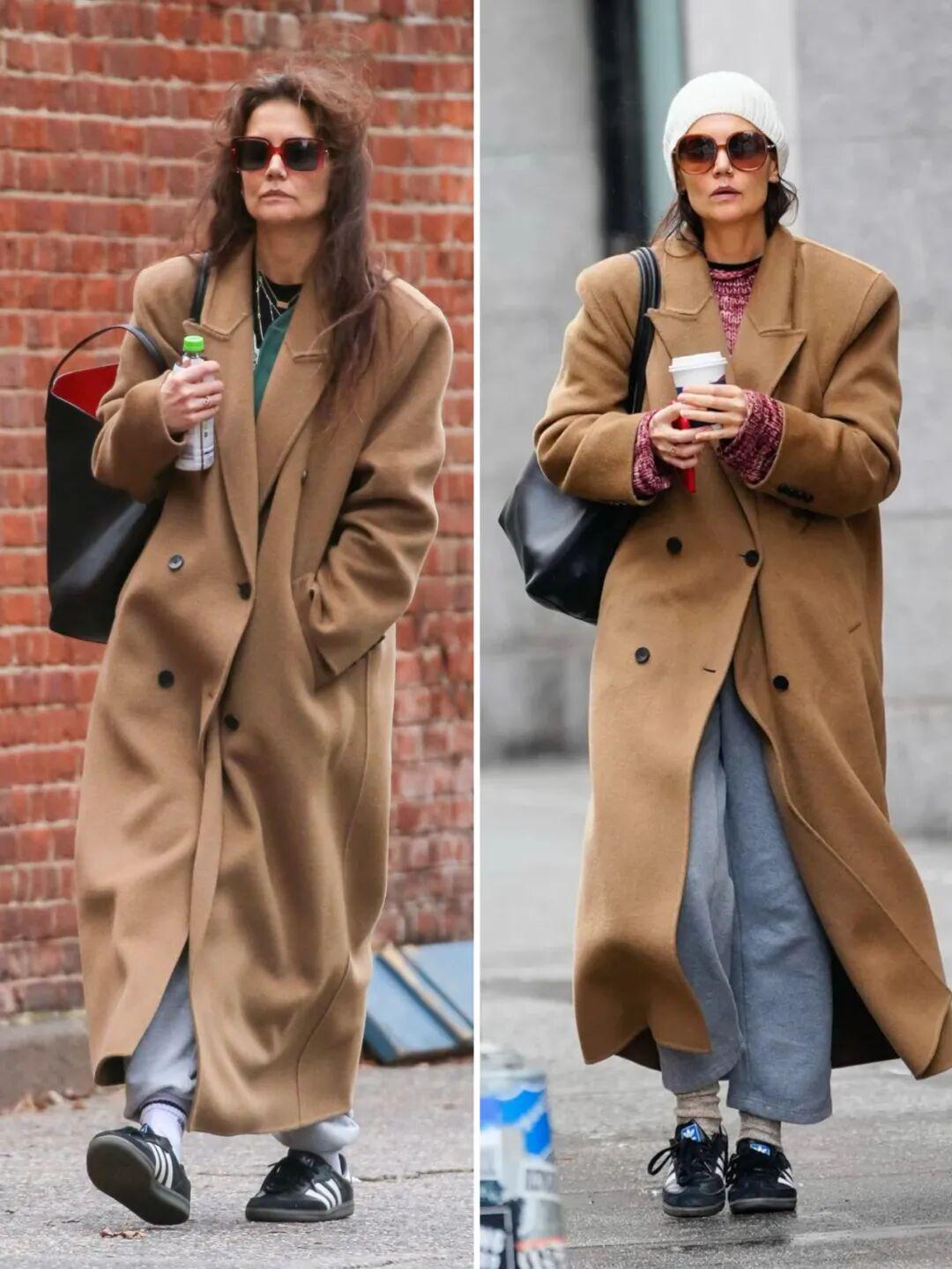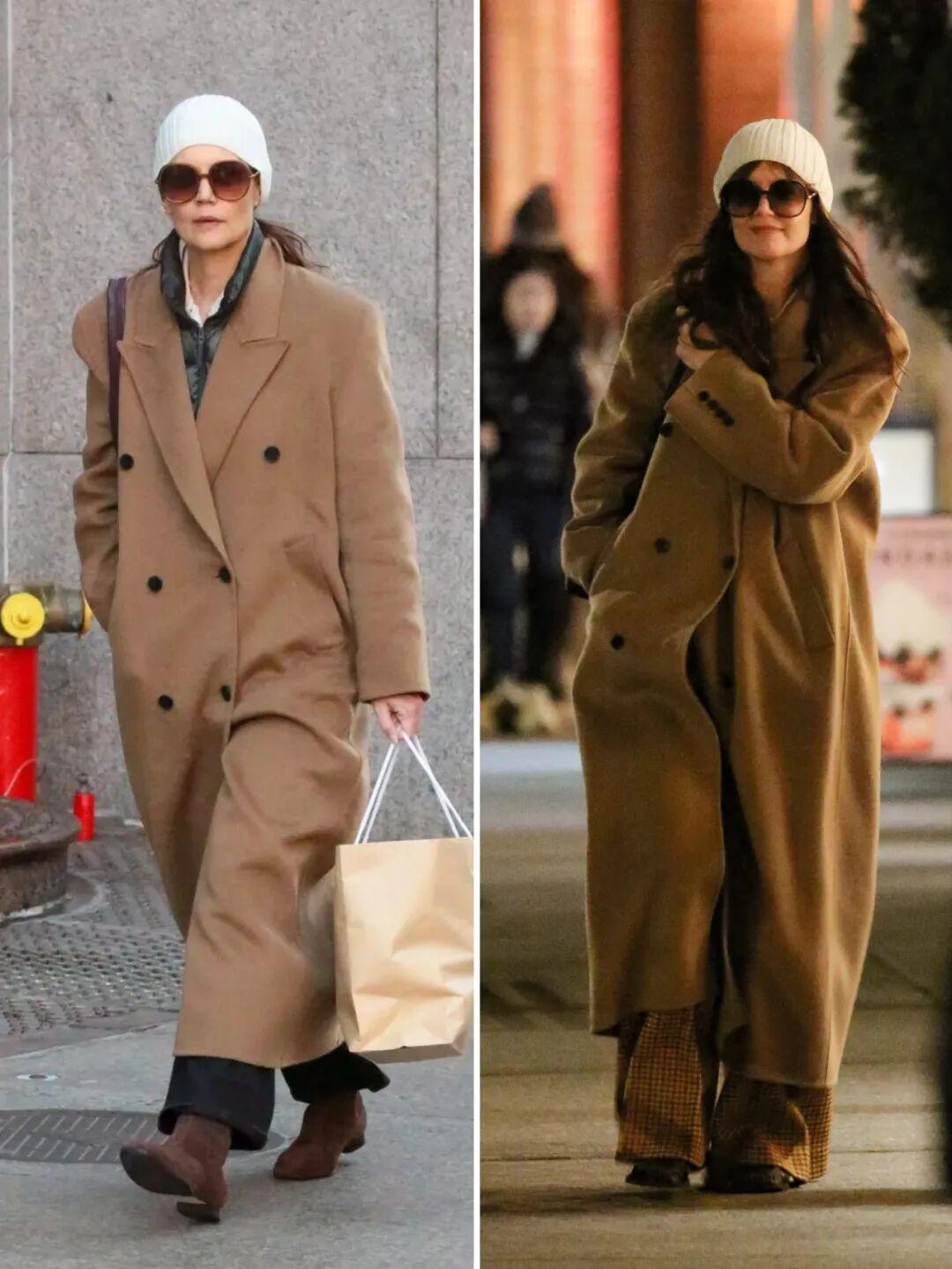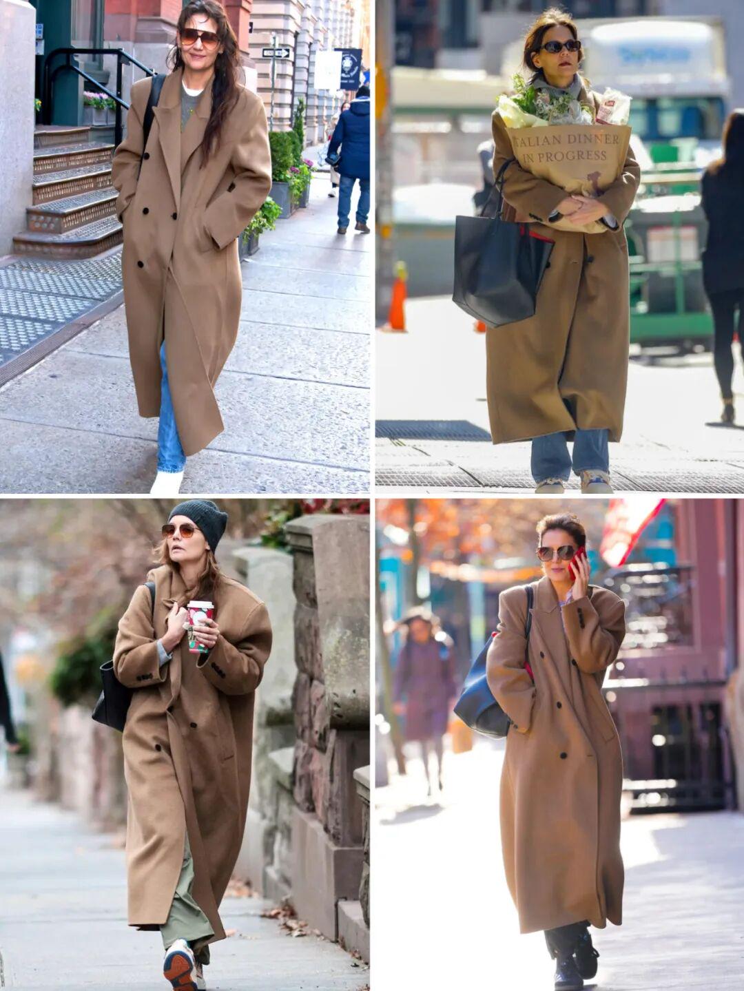 2023年末开始,凯蒂·霍尔姆斯(Katie Holmes)的秋冬穿搭里就高频出现这件3500元的驼色大衣。▼