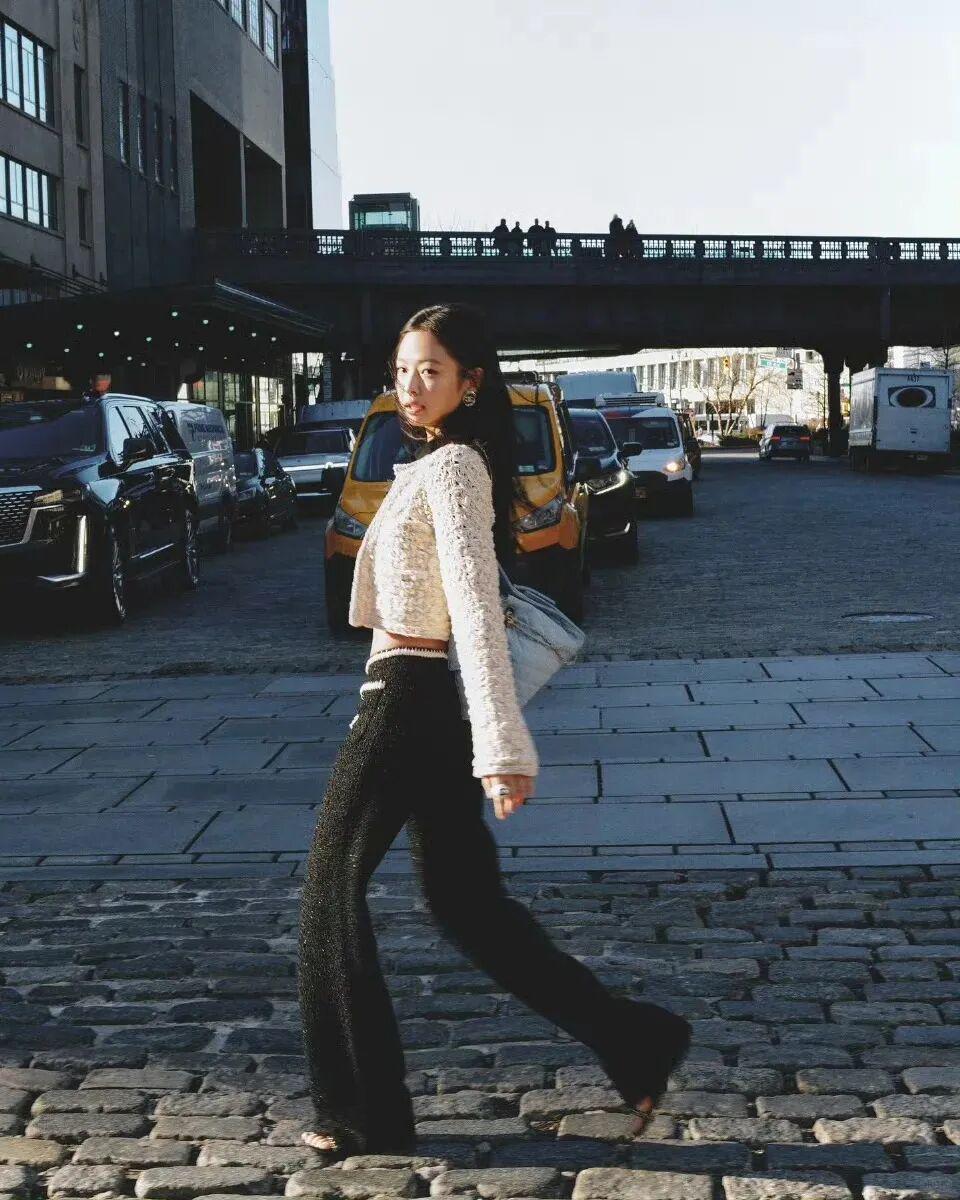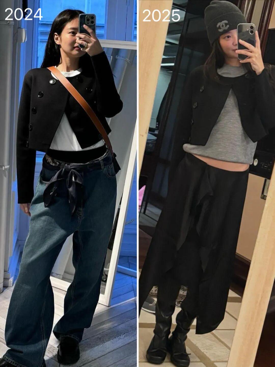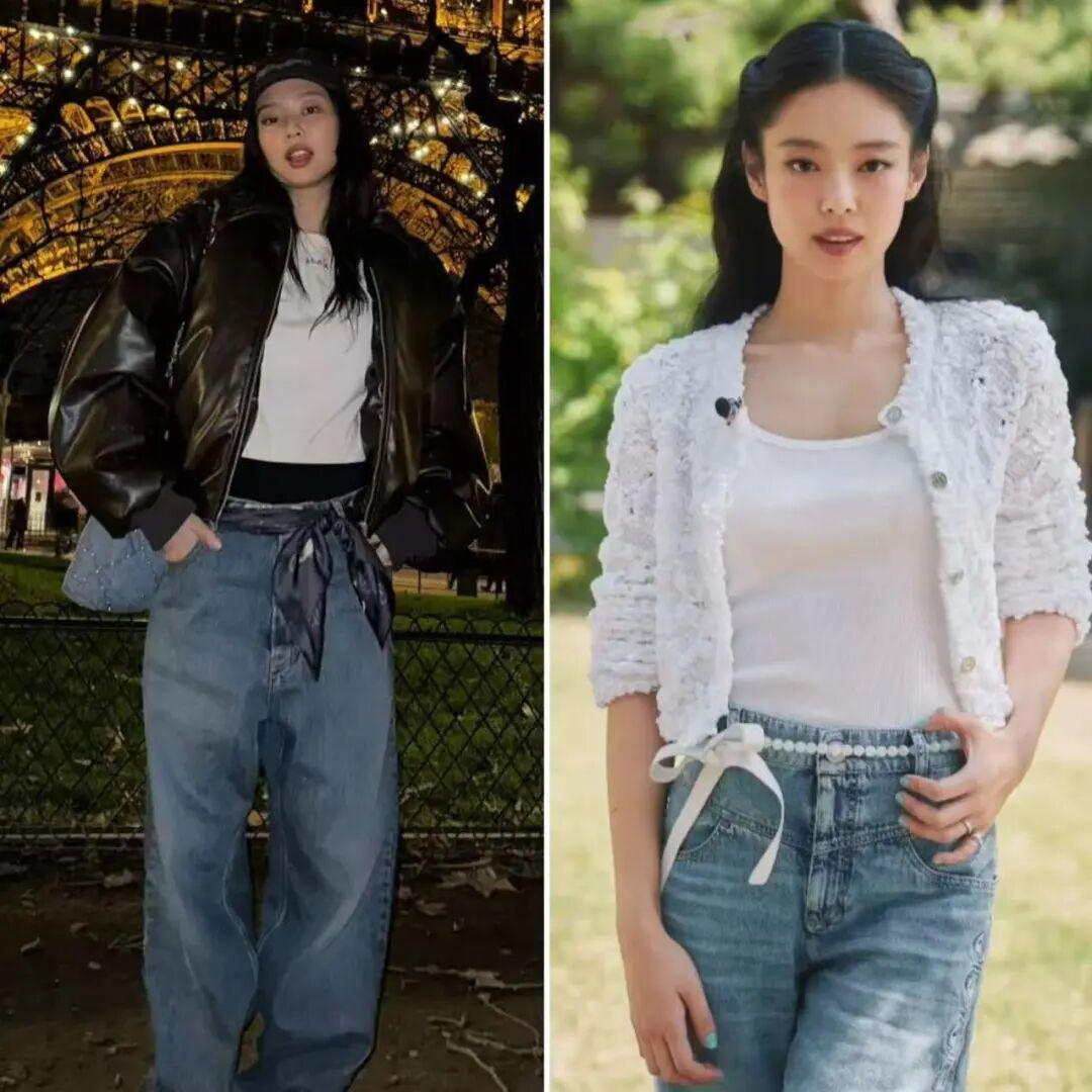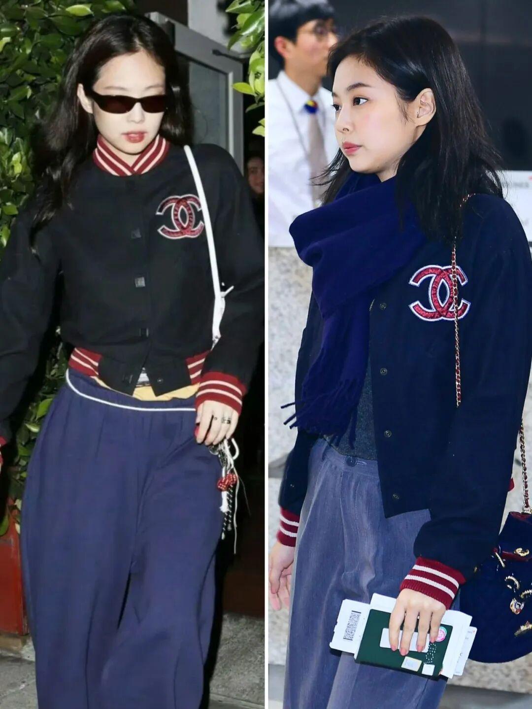Jennie身高163cm左右,多数时候她的外套都爱选短款,整体更显比例。