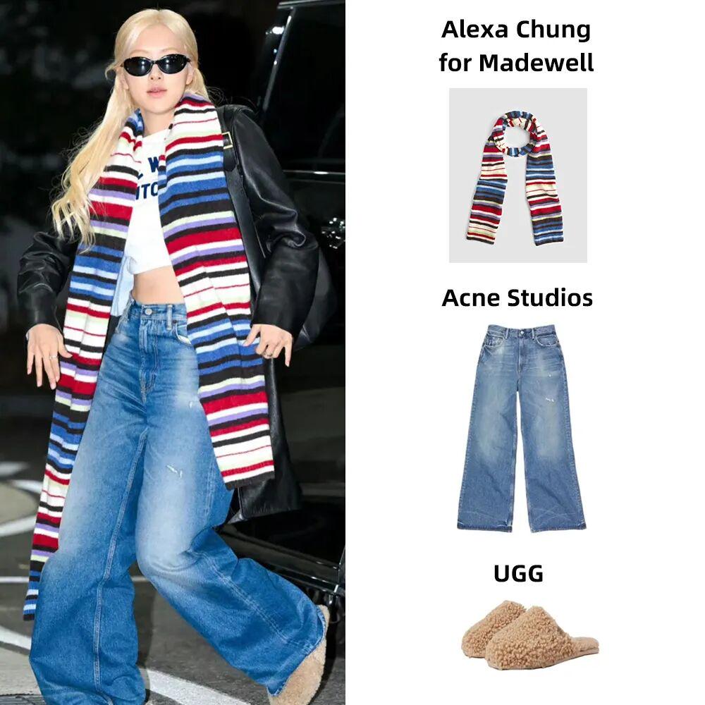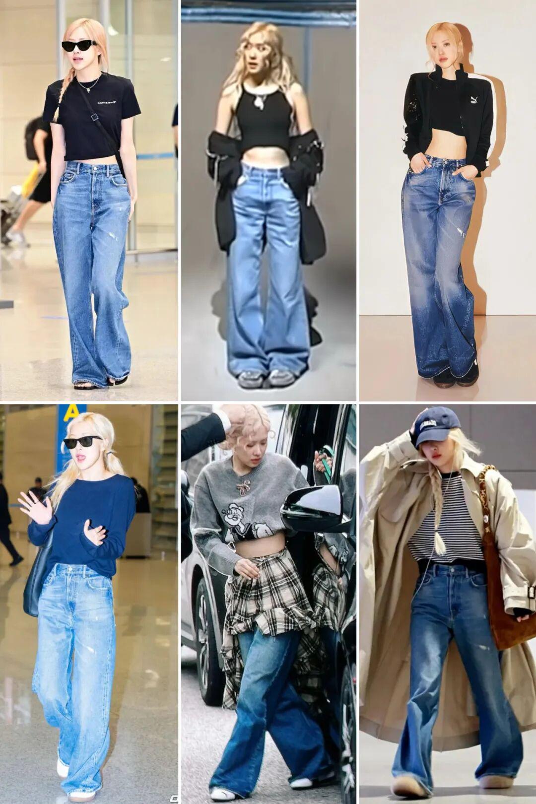 Rosé上周的机场穿搭又第一百零八次穿上了Acne Studios的这条阔腿牛仔裤。▼