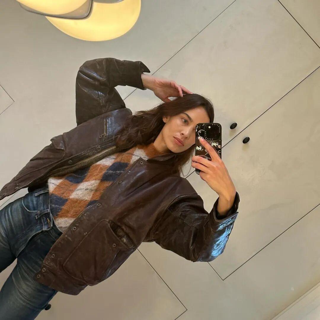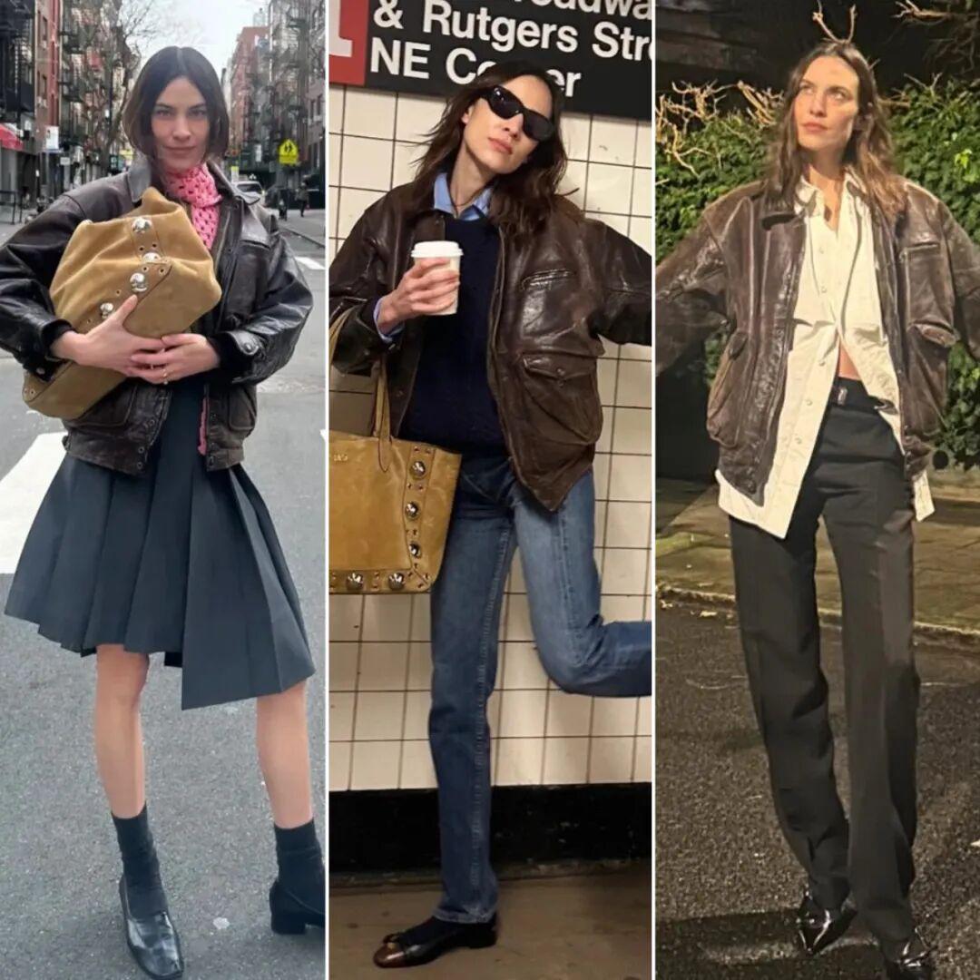 最近在ins刷图,发现钟小姐这几个月来几乎都在穿同一件vintage皮衣▼