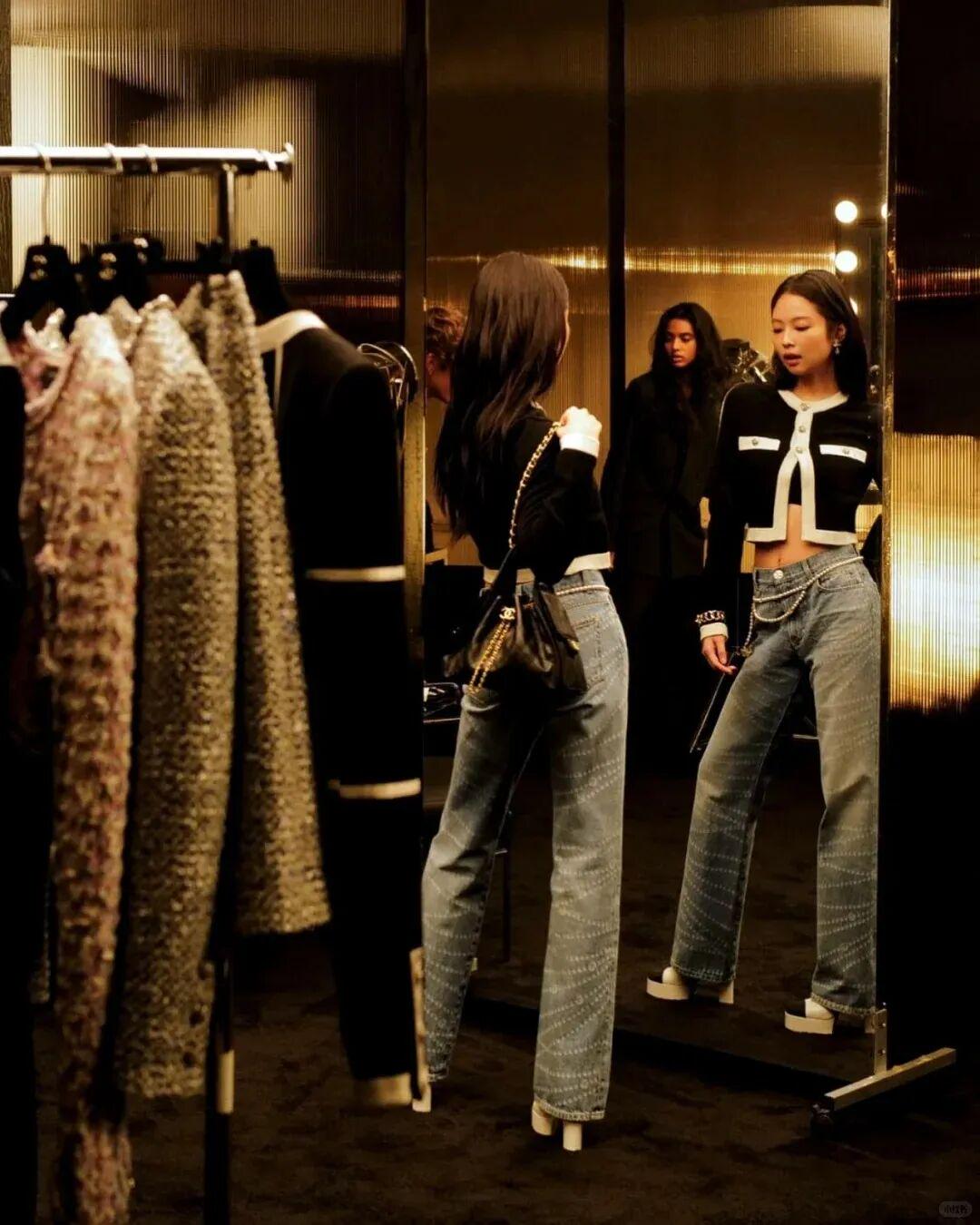 她会经常从妈妈衣橱里借衣服穿,上面这件Chanel 外套甚至是1995的款式,比Jennie还大一岁,说小时候抱过她都不为过。▼