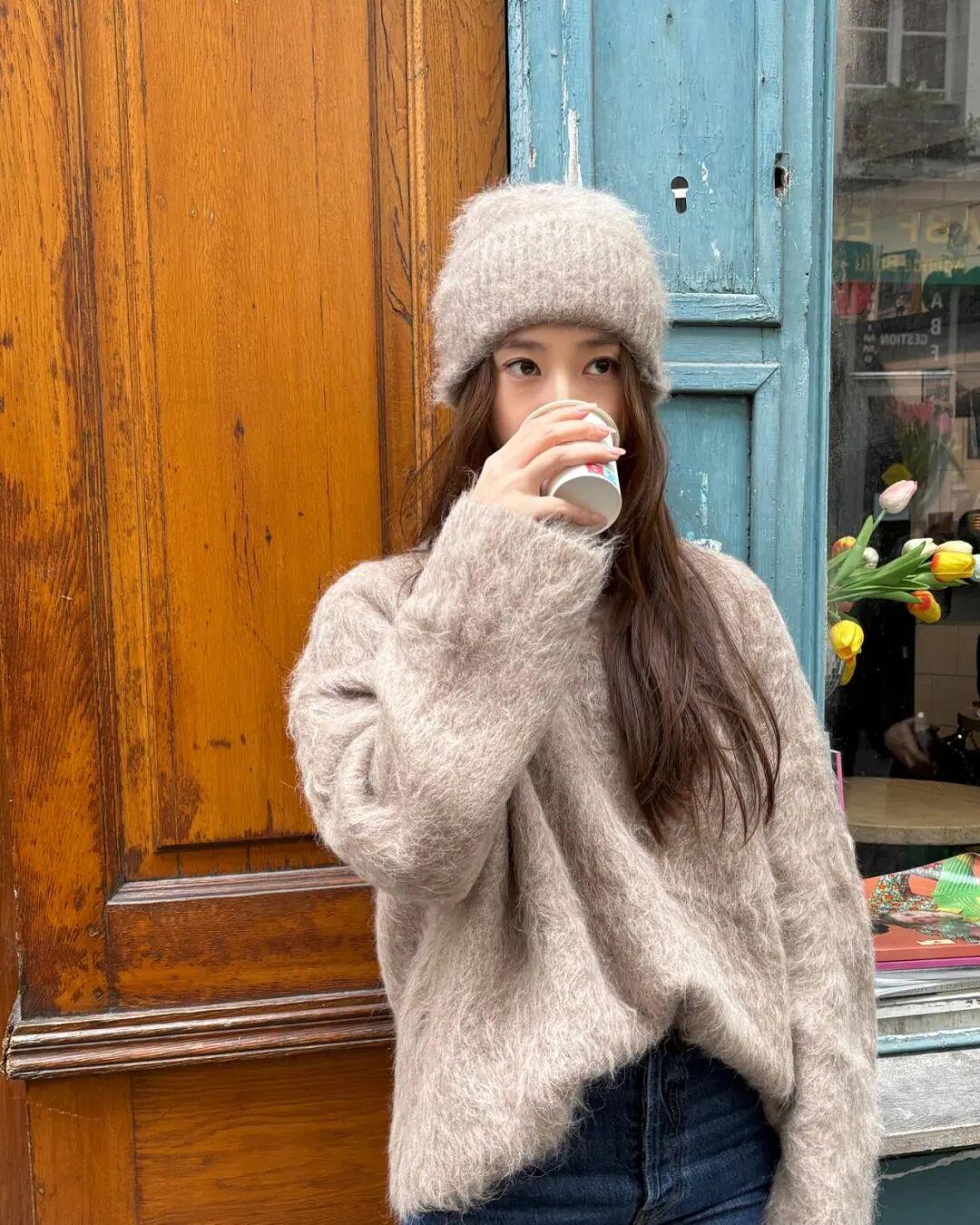 搭配绞花毛衣首选浅色系裤子,色调和谐又温暖,又能让整体造型更加利落清爽。▼