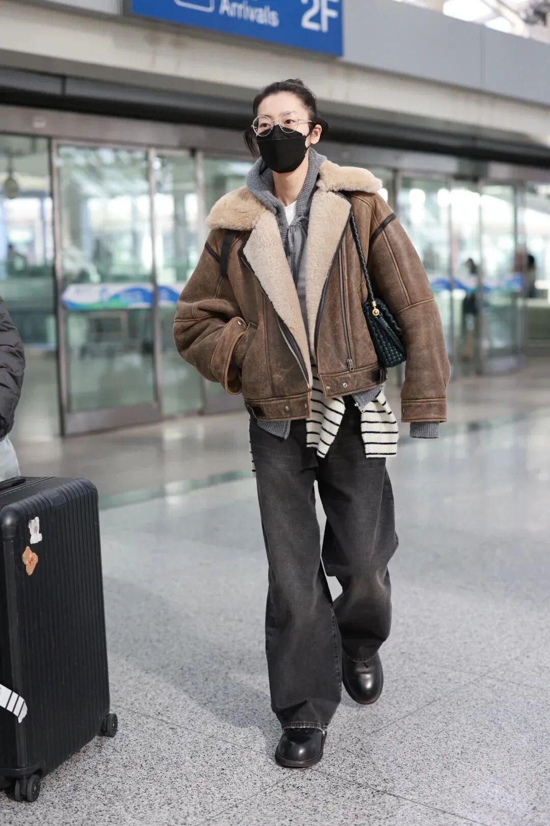 搭配飞行员夹克的这套造型,是文淇个人风格的最突出的一套,帅气又洒脱。▼