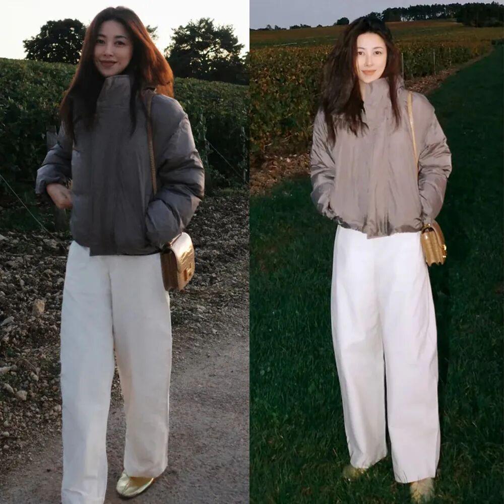 倪妮穿的这种防水面料的空气棉服还挺实穿,轻盈、耐脏、保暖,Lemaire、Studio Nicholson都推出过类似款式。▼