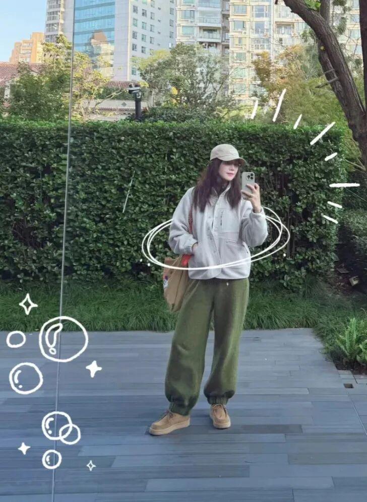 这双鞋子高圆圆去年就穿过,搭配卫衣裤一看就是特舒服的遛弯穿搭。▼