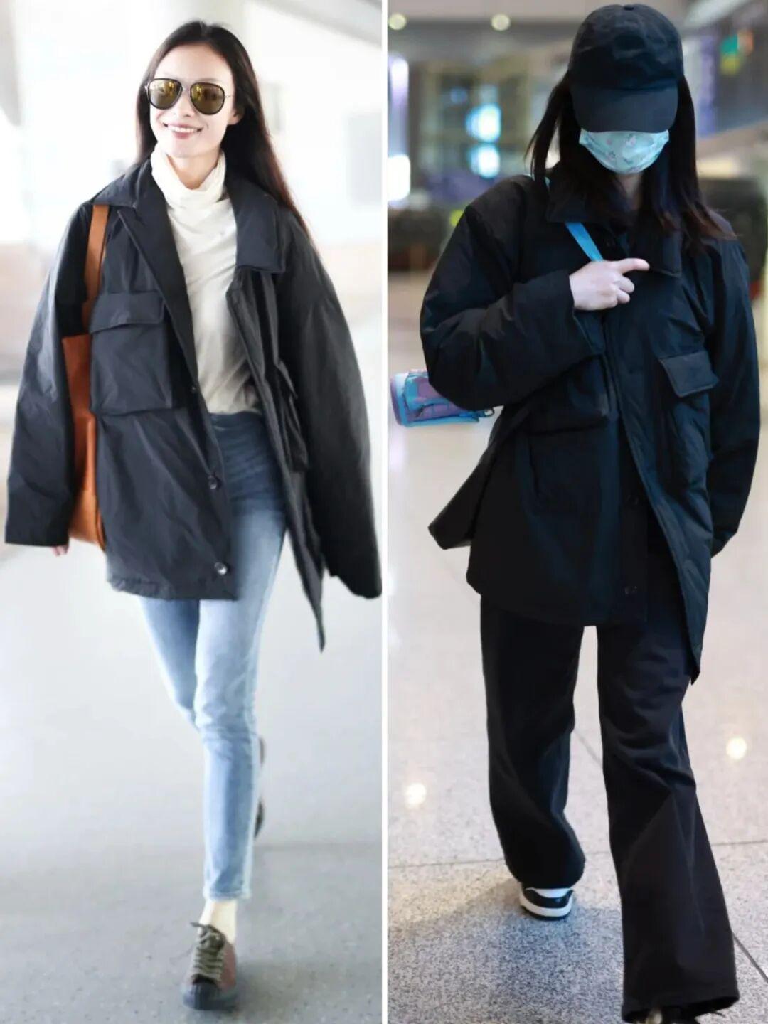第一是衣长,165cm以下不建议选择盖过臀部的款式,不仅压身高,轻便性也会大打折扣,就连刘雯、小水都是选择了更实穿的短款。▼