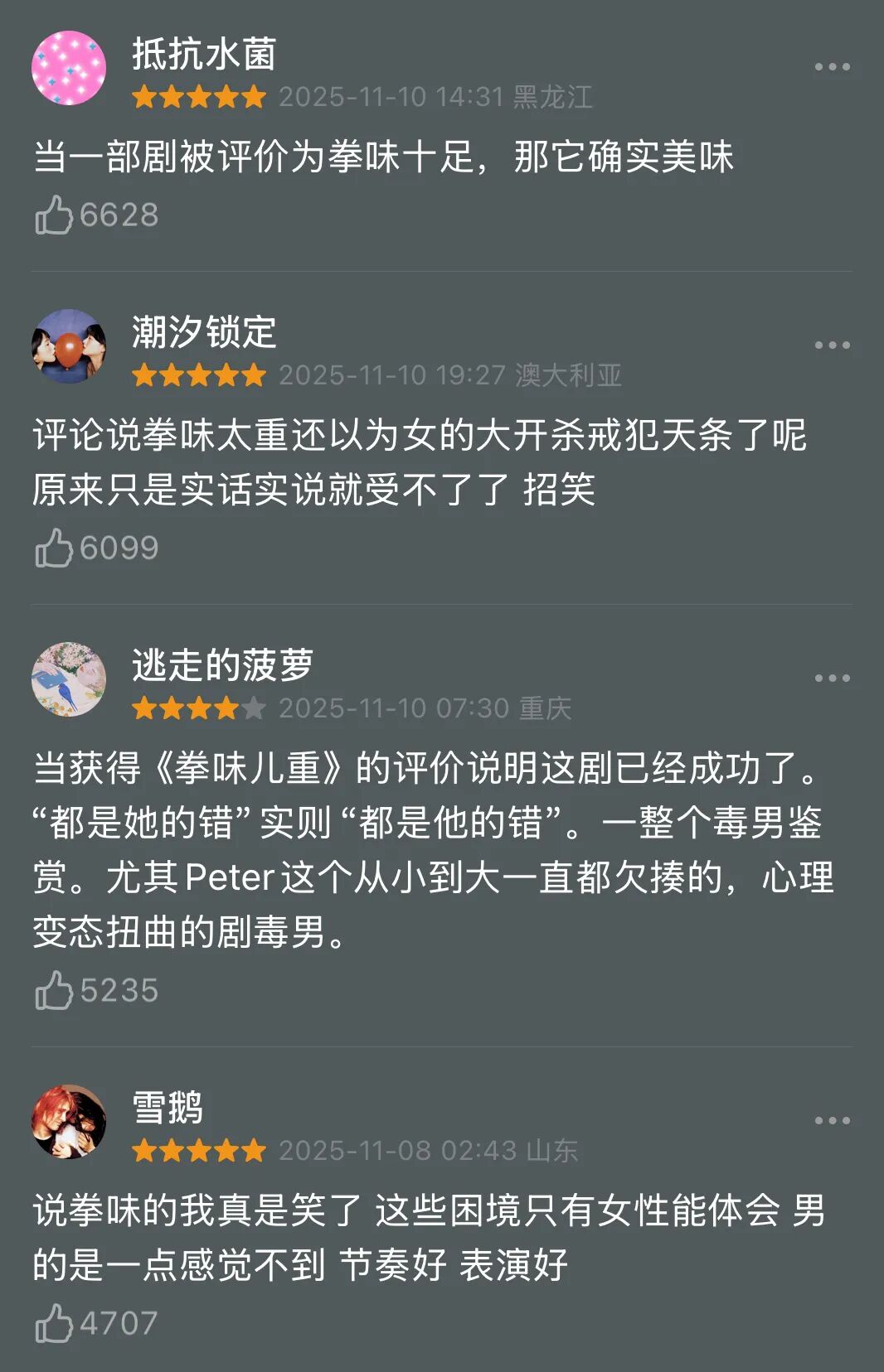 这种对垒,令《都是她的错》在中国大陆的互联网上,经历了预料之中的“风暴”,即部分观众以“本剧拳味扑鼻”为由打出低分,另一部分观众则以相反理由打出五星。