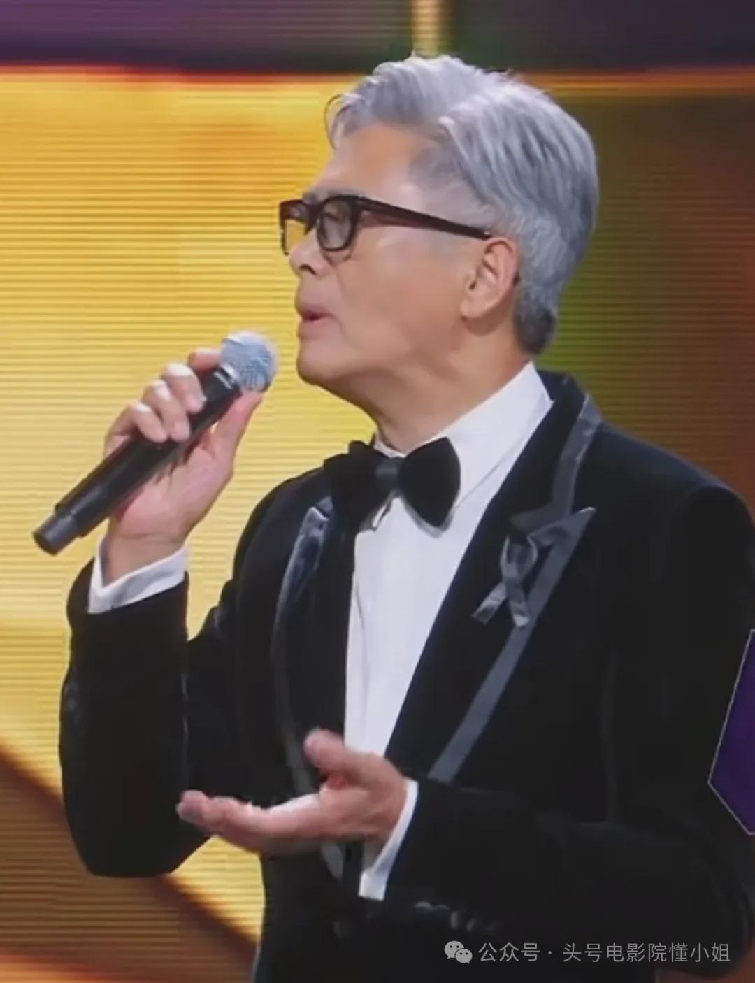 聚光灯下,他那曾经乌黑浓密的头发已被岁月染白,但挺拔的身姿和沉稳的气场,让这个原本的娱乐颁奖礼,多了一份不同寻常的庄重肃穆。