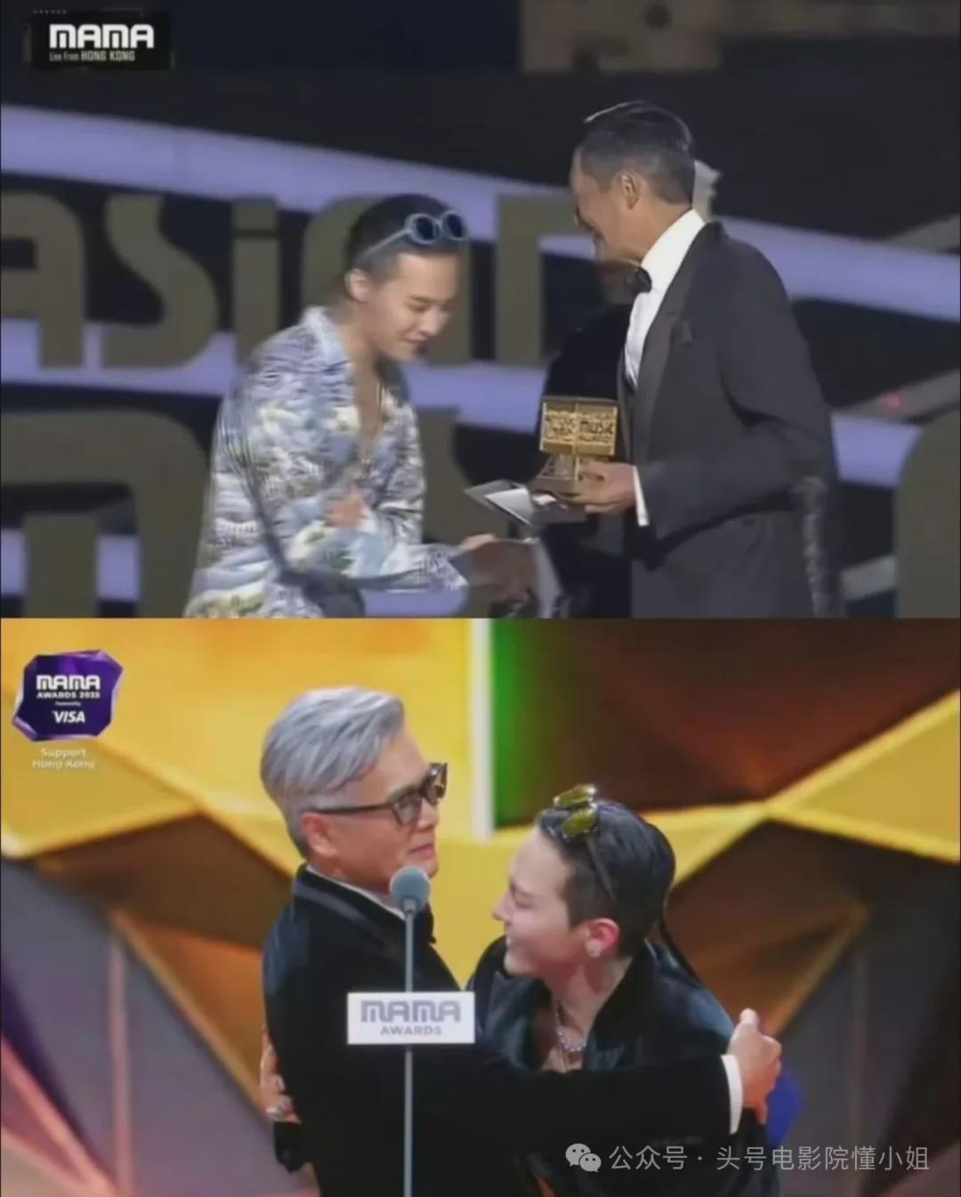 这一刻,时光仿佛倒流回2015年——同样是香港MAMA舞台,同样是周润发与权志龙,同样是“年度艺人”奖项。