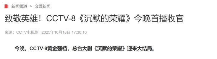 CCTV电视剧|2025年10月18日《致敬英雄!CCTV-8《沉默的荣耀》今晚首播收官》