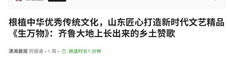 潇湘晨报的报道《根植中华优秀传统文化,山东匠心打造新时代文艺精品《生万物》:齐鲁大地上长出来的乡土赞歌》