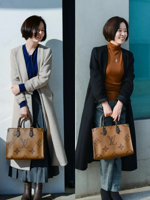 出门的时候还可以搭一个简约的腋下包、手提包,款式就选择经典的大地色和黑色系都挺好搭配的,特别实用,还能平衡整体造型,避免咱们的穿搭过于单调。
