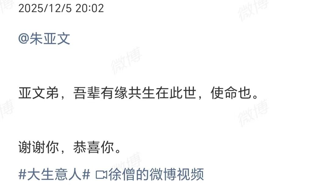 朱亚文饰演的李成被俘、自戕、白李夫妇生死别离后,徐僧在个人社交平台发文说:亚文弟,吾辈有缘共生在此世,使命也。谢谢你,恭喜你。