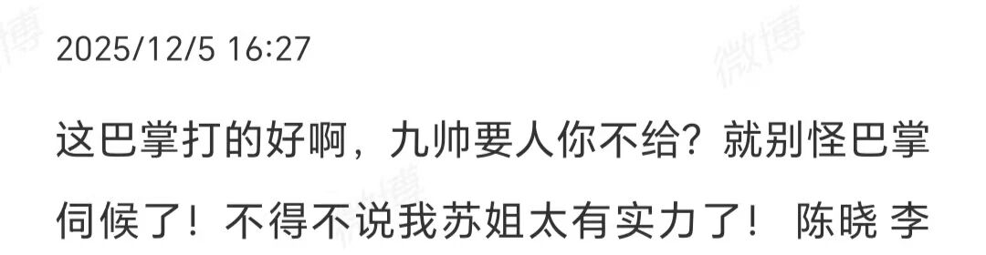 九帅对保庆、乔松扇大耳刮子这段剧情,的确太爽了,角色的确太霸道了,观众们大呼过瘾并表示看不够。