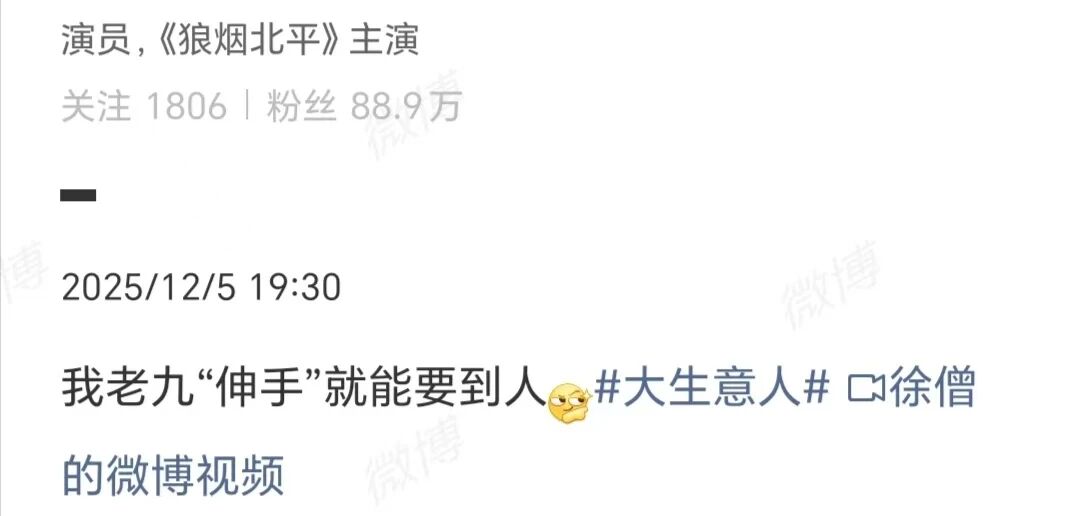 对于九帅打人要人这段剧情,徐僧说:我老九“伸手”就能要到人!