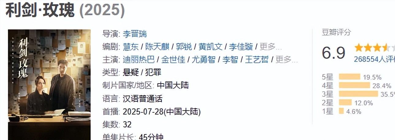 都是6.9分,不过这部剧总体来说还是胜过《利剑玫瑰》的。